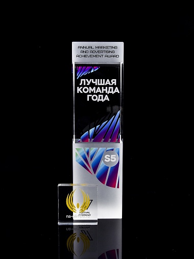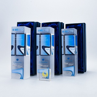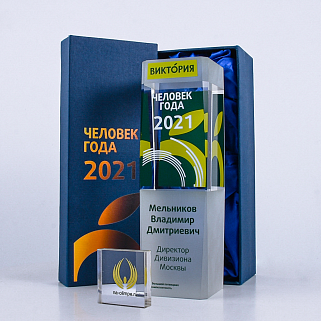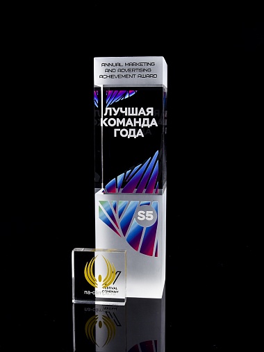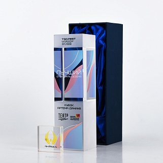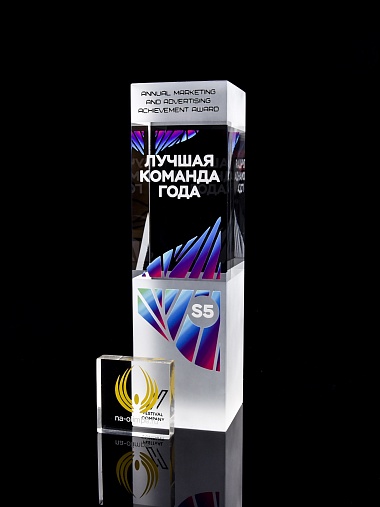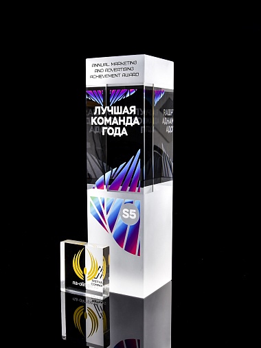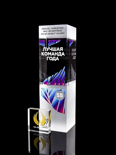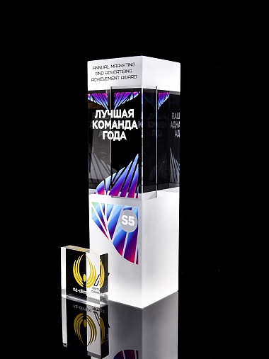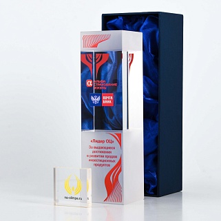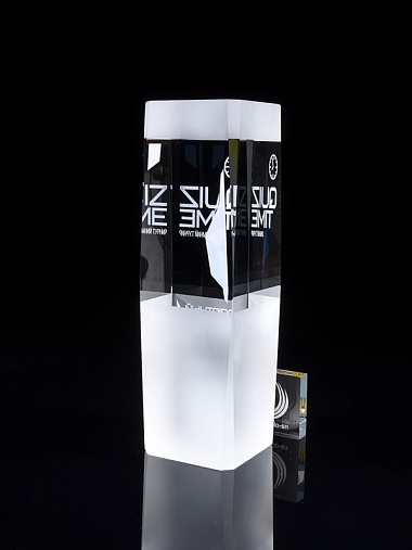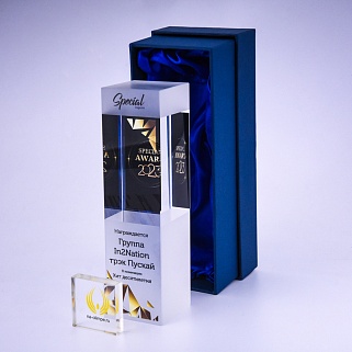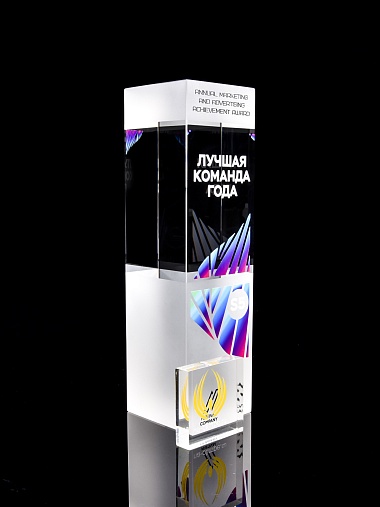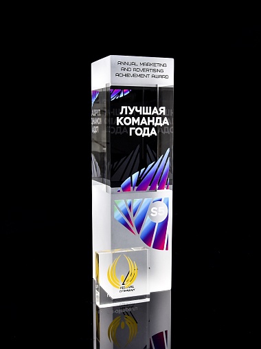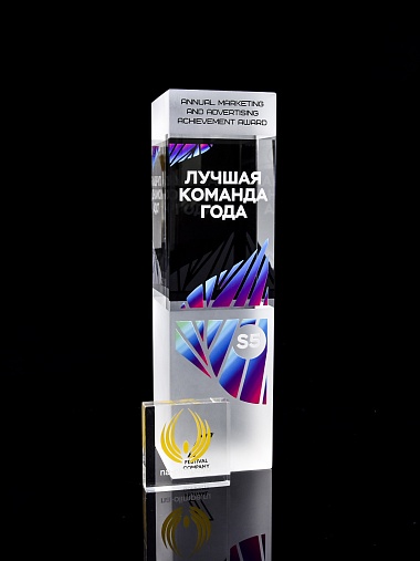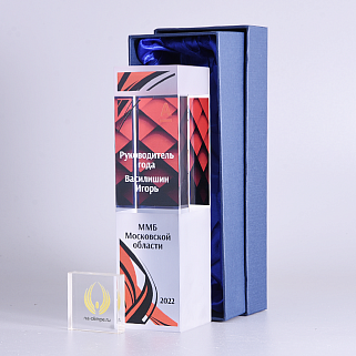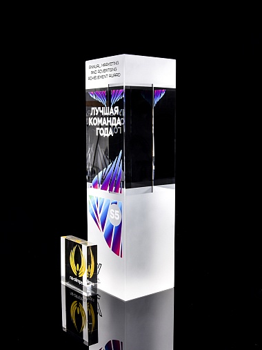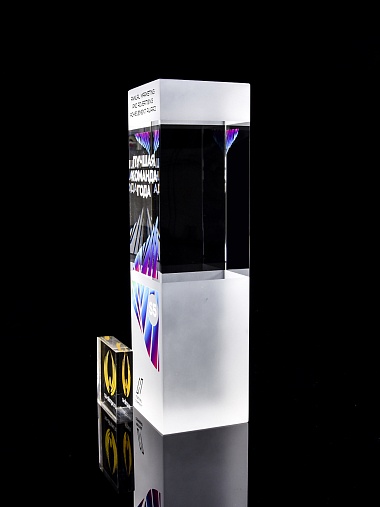 Стеклянная награда C50-180 с цветным нанесением, высота 18 см