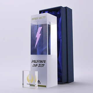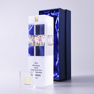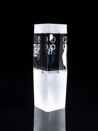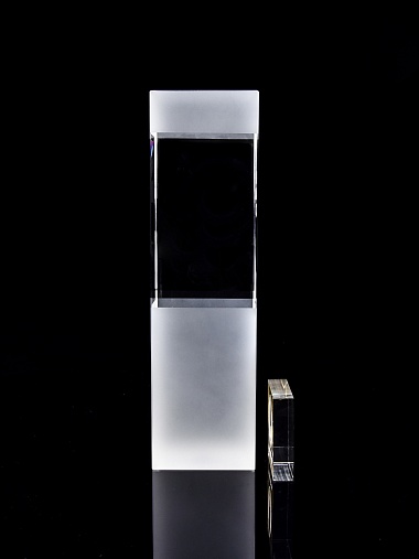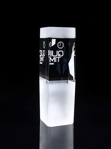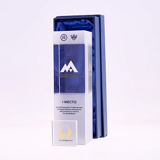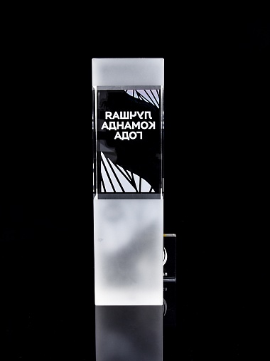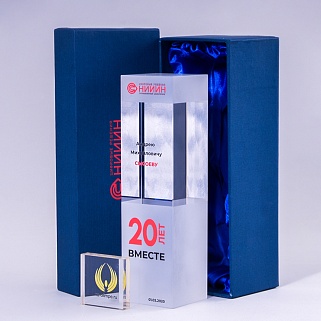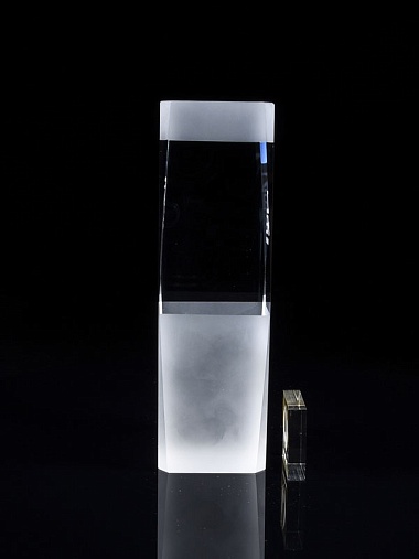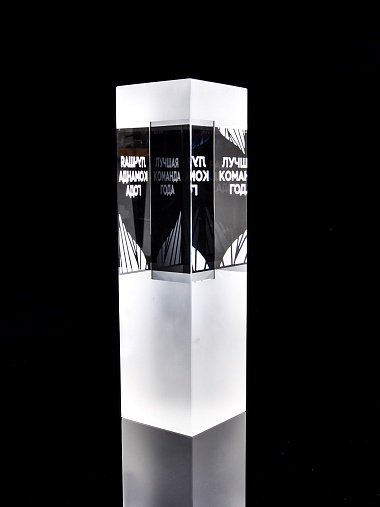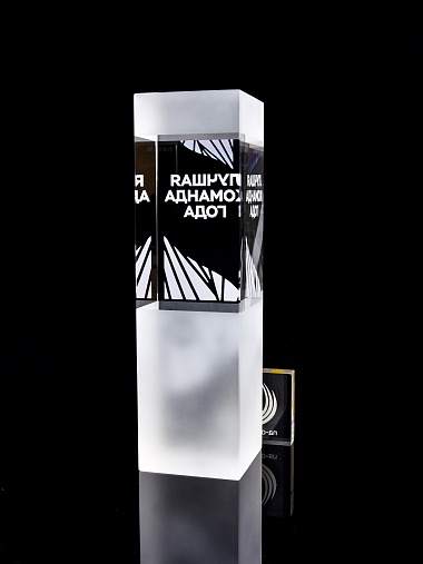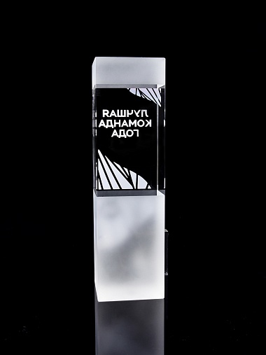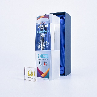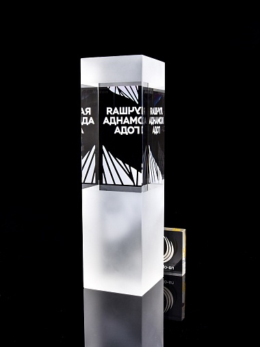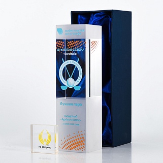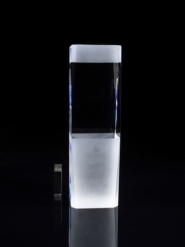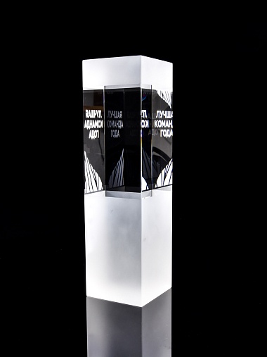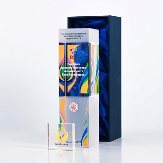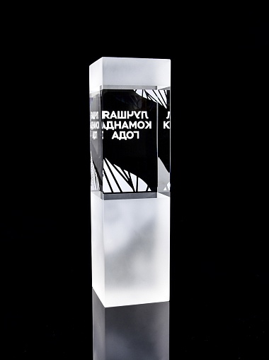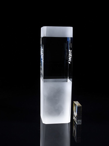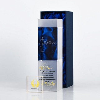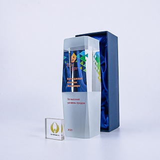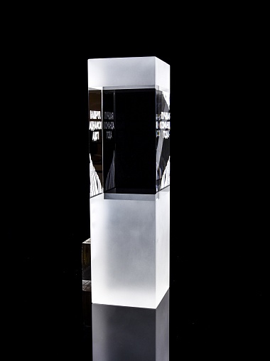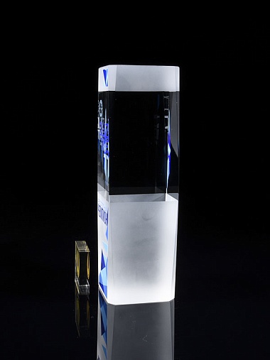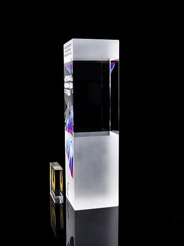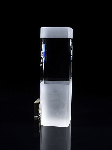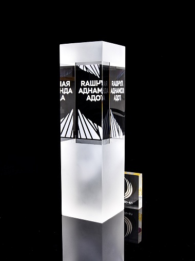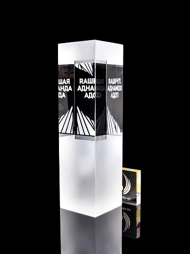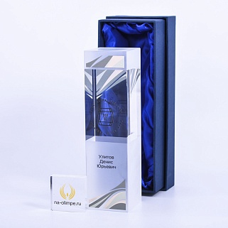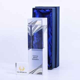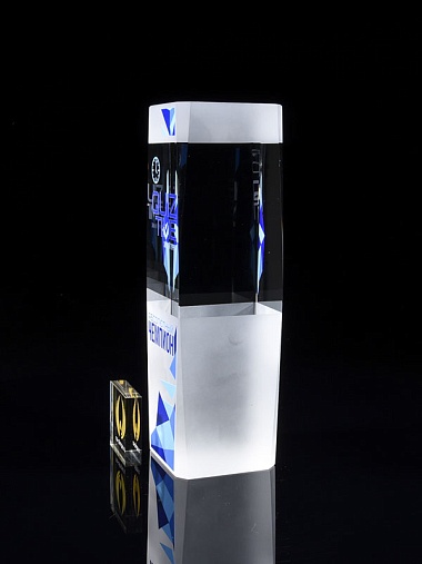 Стеклянная награда с цветным нанесением. Поставляется в комплекте с подарочным футляром. Вес награды без футляра 1130гр. Стоимость указана за нанесение на лицевой и оборотной стороне награды. Возможность нанесения на боковые стороны и стоимость этих работ можно уточнить у менеджеров.