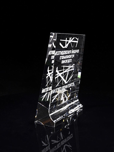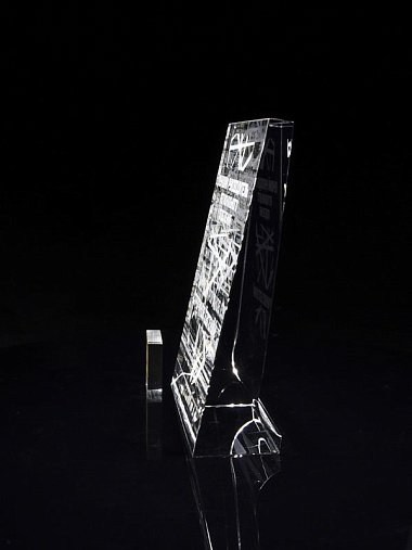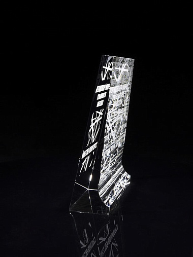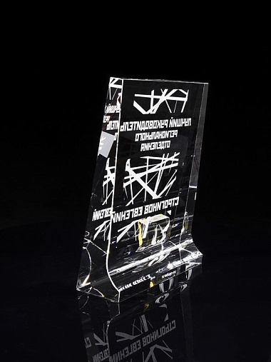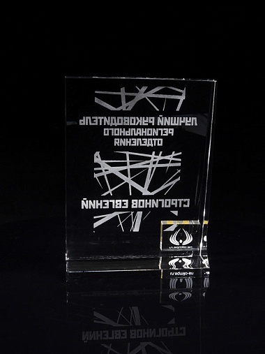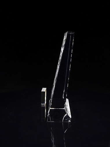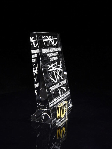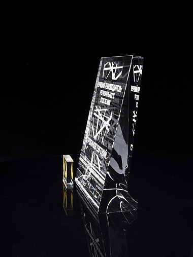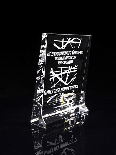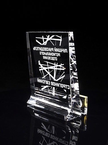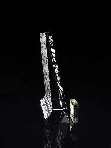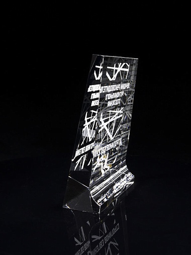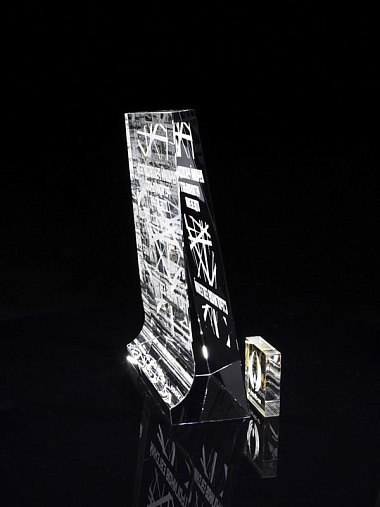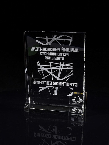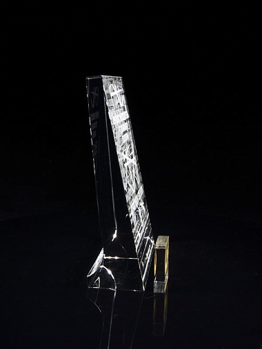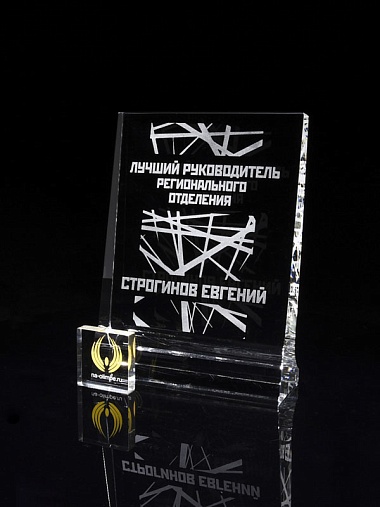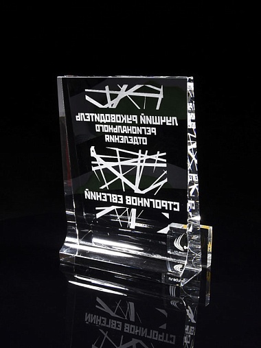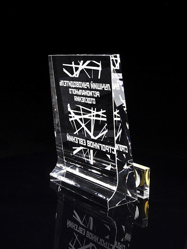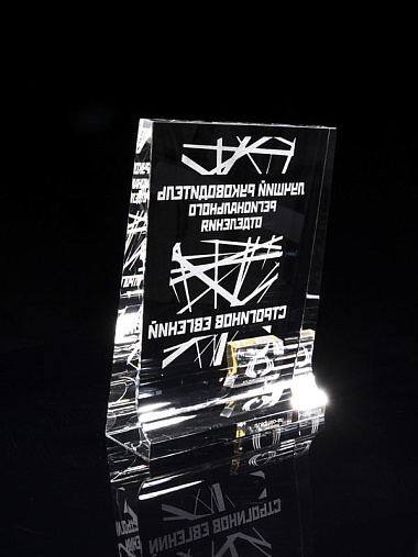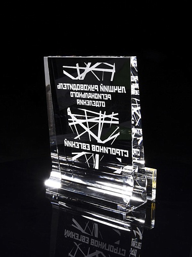 Стеклянная награда с гравировкой. Поставляется в комплекте с подарочным футляром. Стоимость указана за нанесение на одной стороне, гравировка выполняется на задней стенке награды.