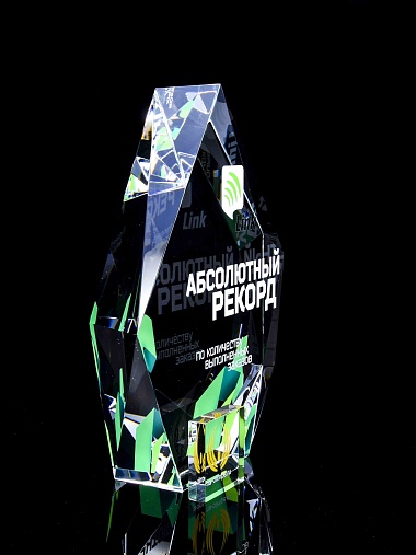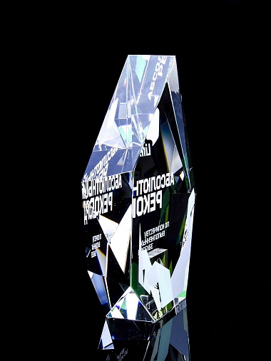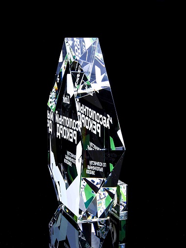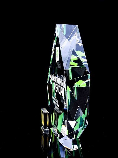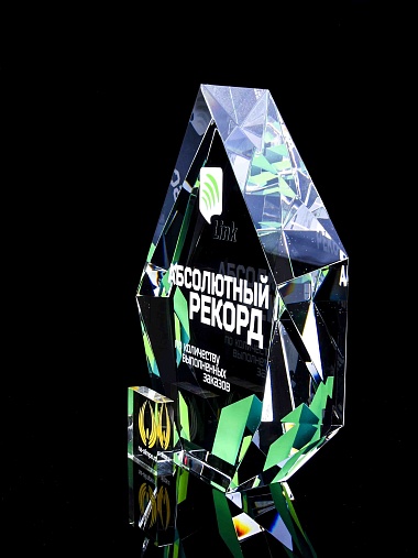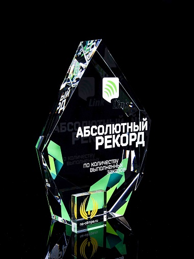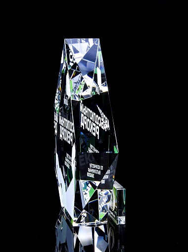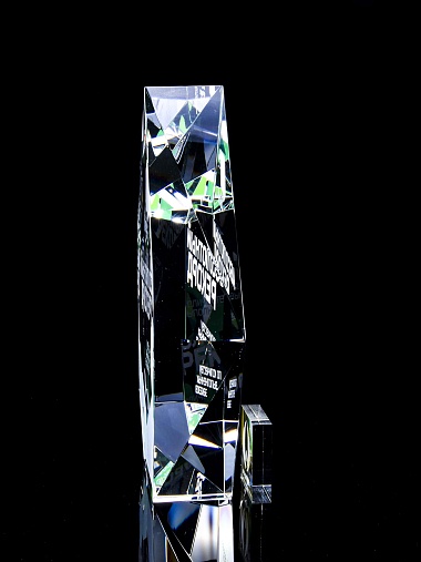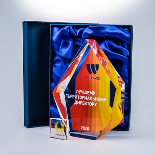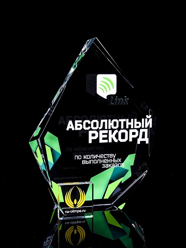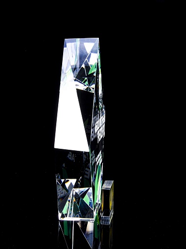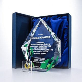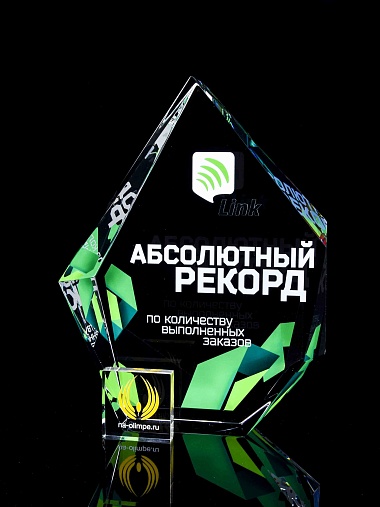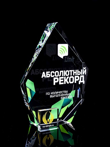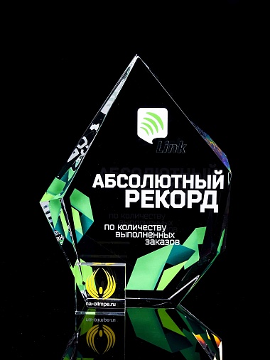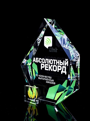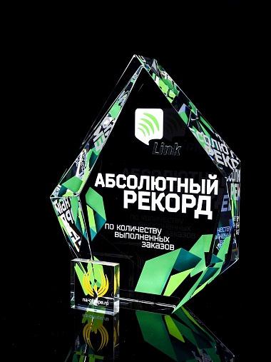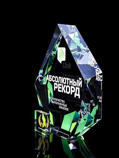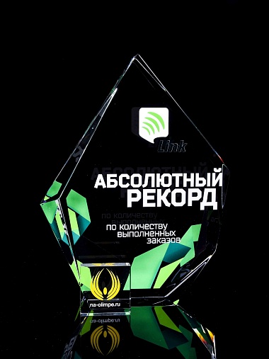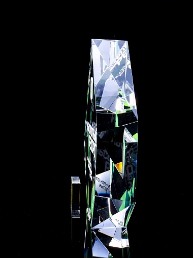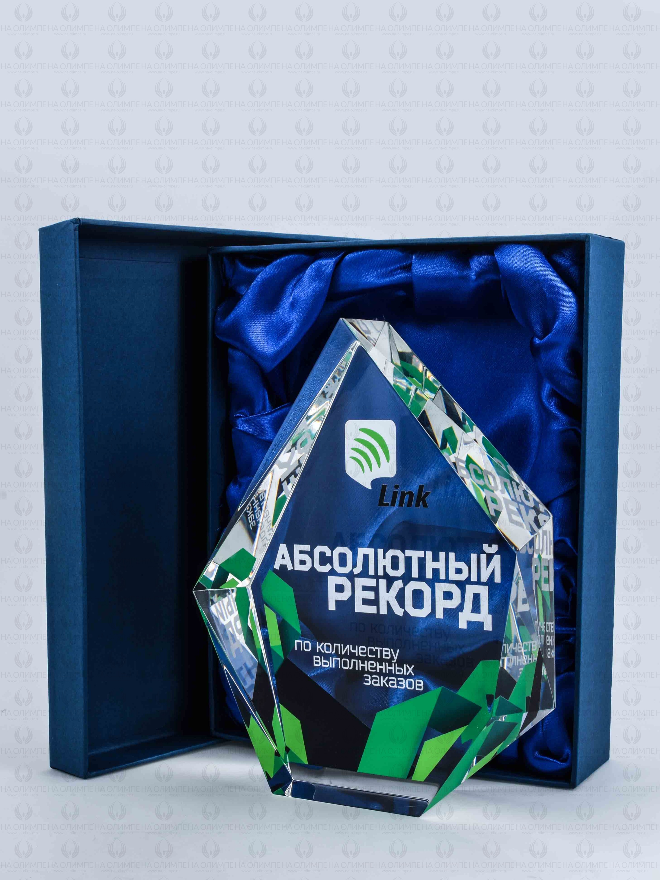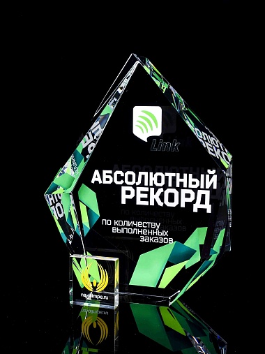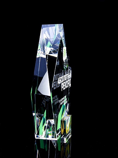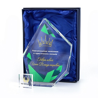 Стеклянная награда C5-200 с цветным нанесением, высота 20 см