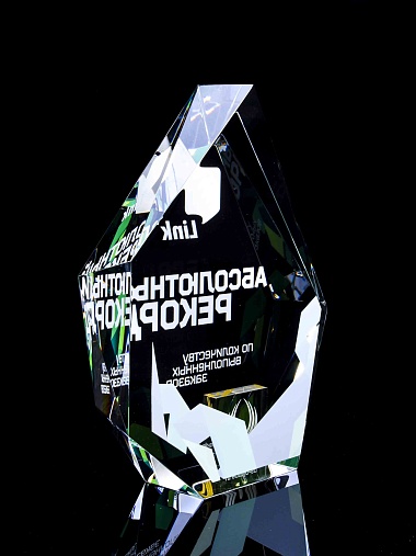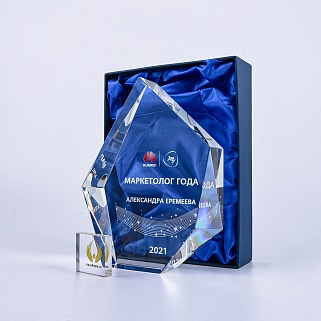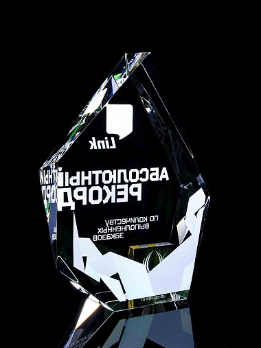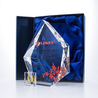Стеклянная награда с полноцветным нанесением. Толщина стекла 40 мм. Поставляется в комплекте с подарочным футляром. Вес награды без футляра 1930гр. Стоимость указана за нанесение на одной стороне, печать выполняется на задней стенке награды. Возможность нанесения на дополнительной стороне и стоимость этих работ можно уточнить у менеджеров.