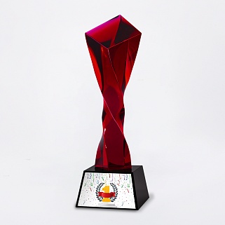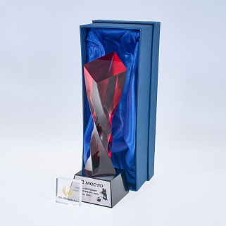 Стеклянная награда на постаменте из черного стекла. Может доукомплектовываться металлической или заливной табличкой с текстом и рисунком. Табличка в комплект не входит и заказывается отдельно. Награда поставляется в комплекте с подарочным футляром. Вес награды без футляра 1050гр.