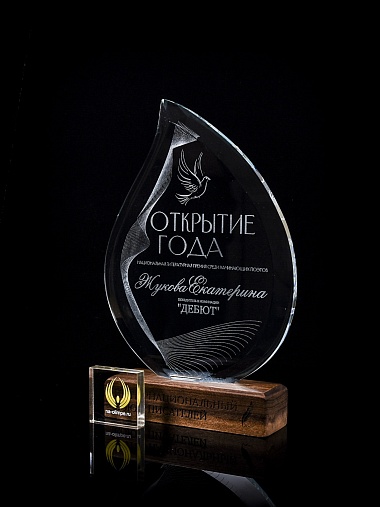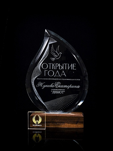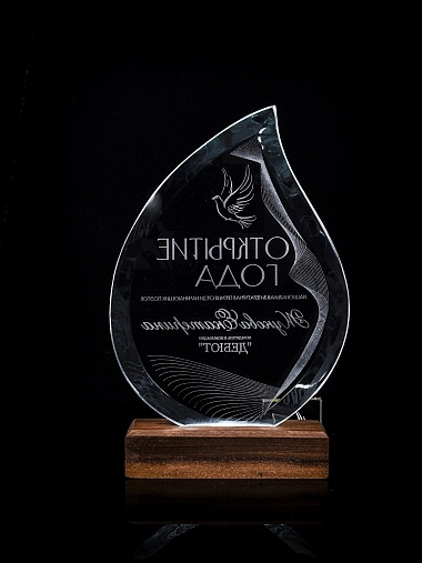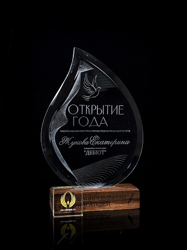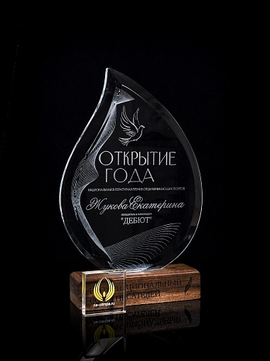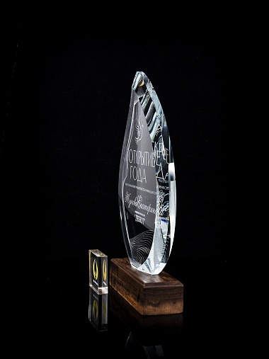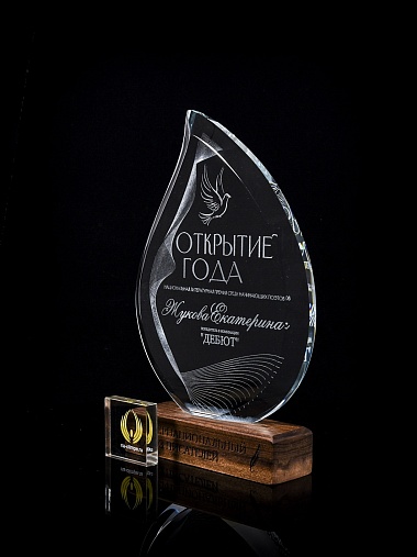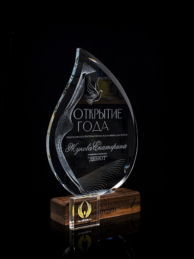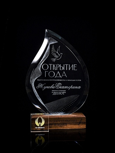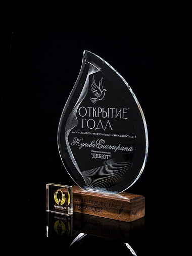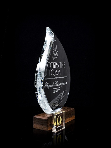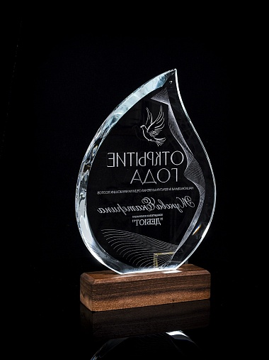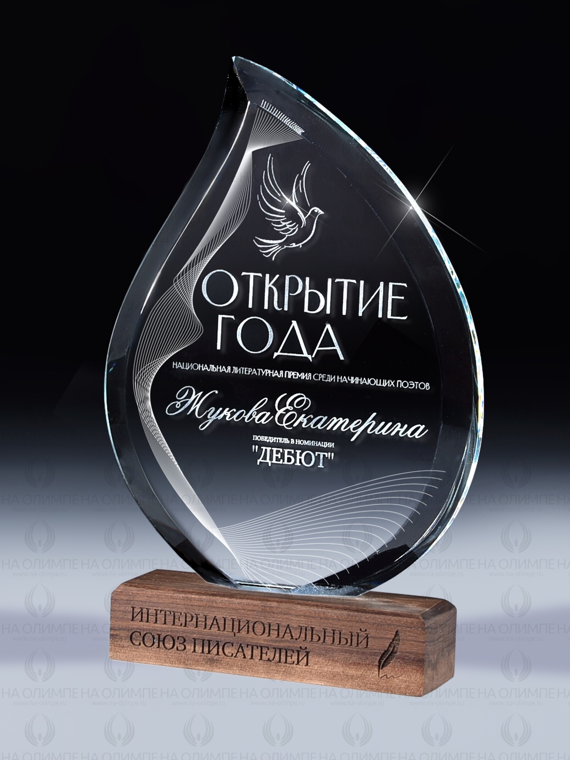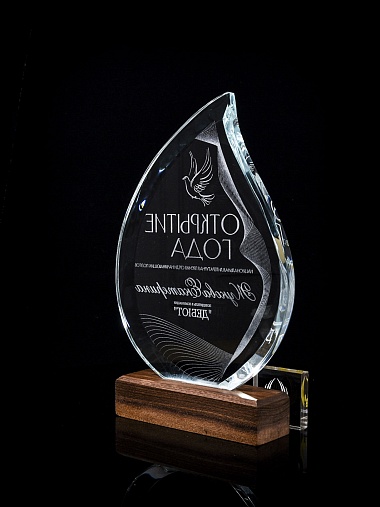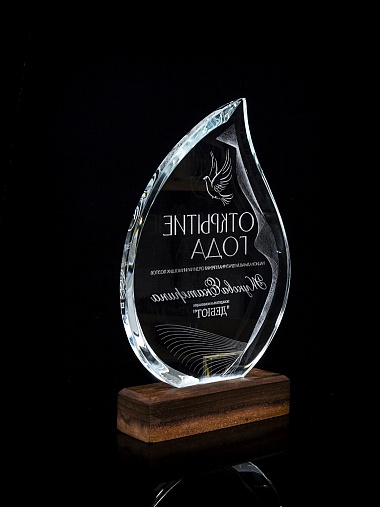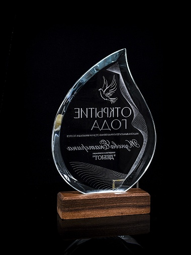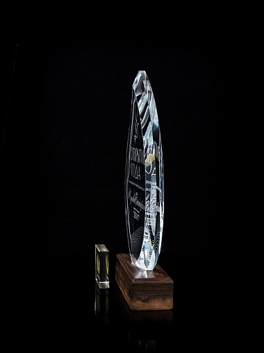 Стеклянная награда C65-210 с гравировкой , высота 23 см