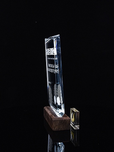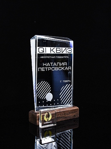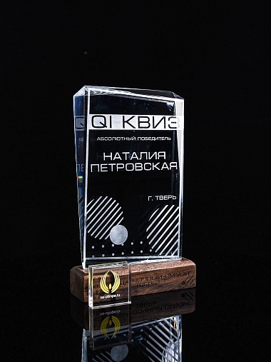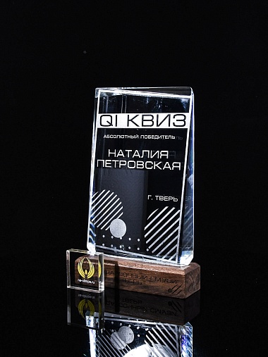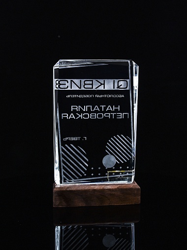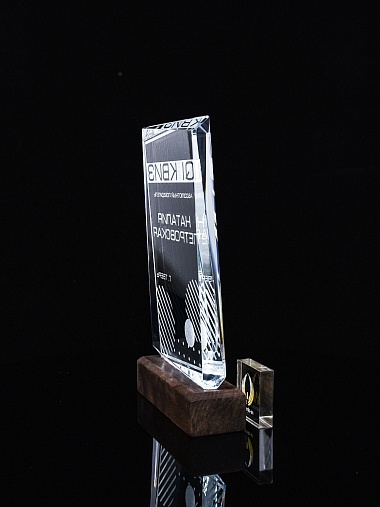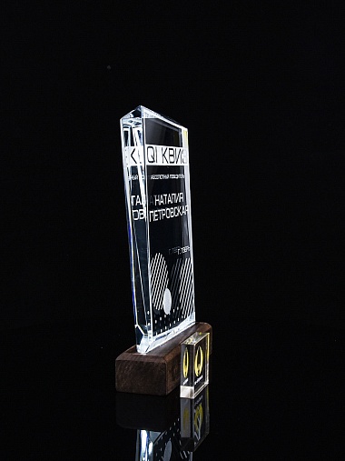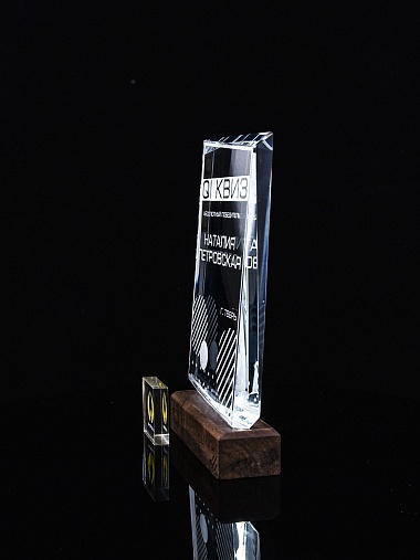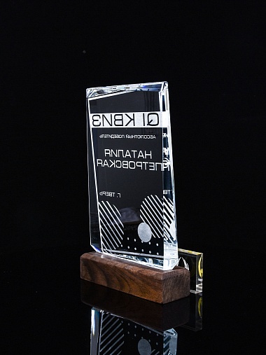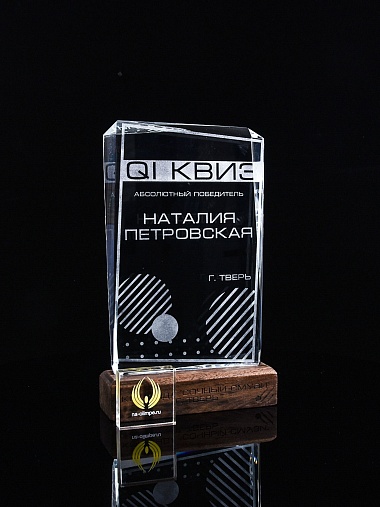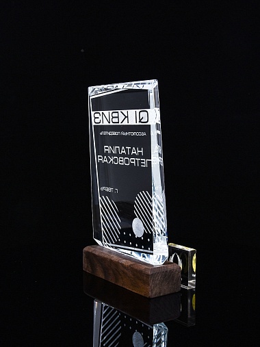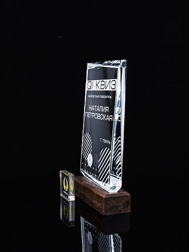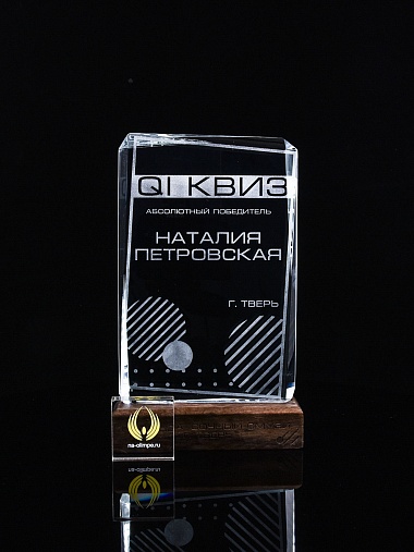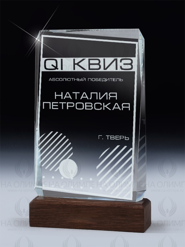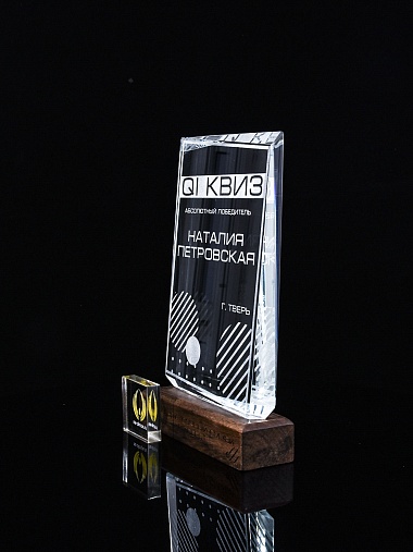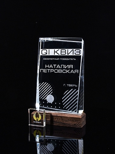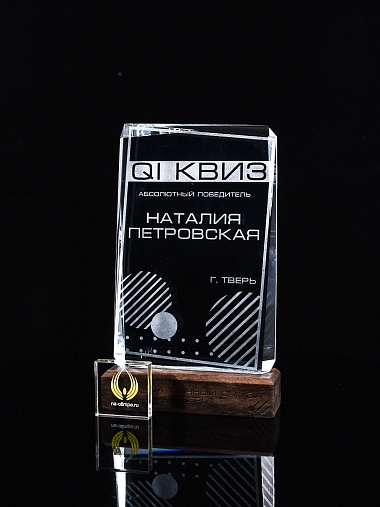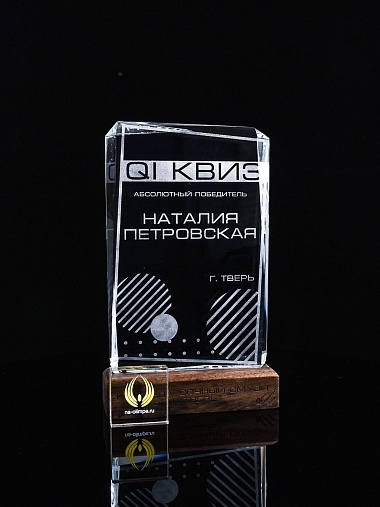 Стеклянная награда C67-200 с гравировкой, высота 21 см