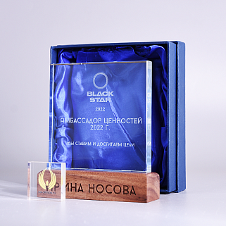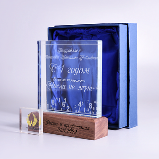 Закажите к награде дополнительно стеклянную медаль. Получится красивый солидный комплект!