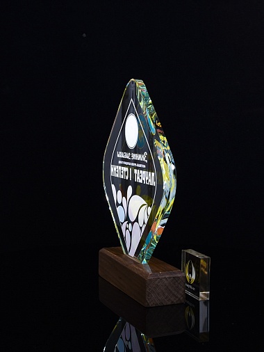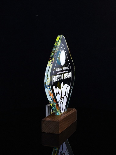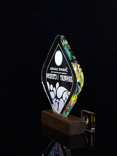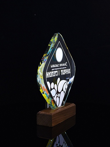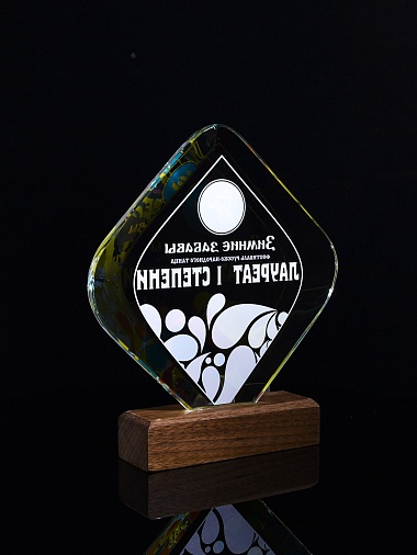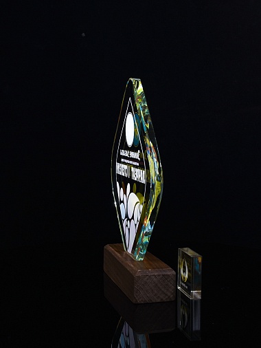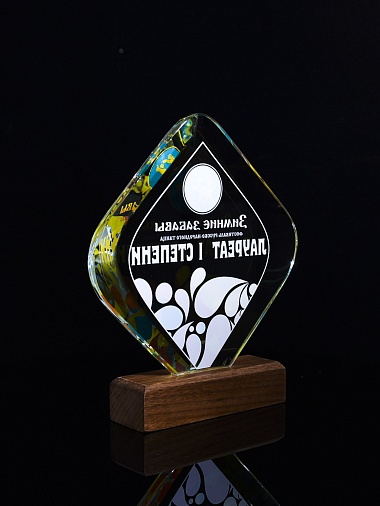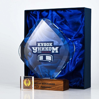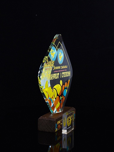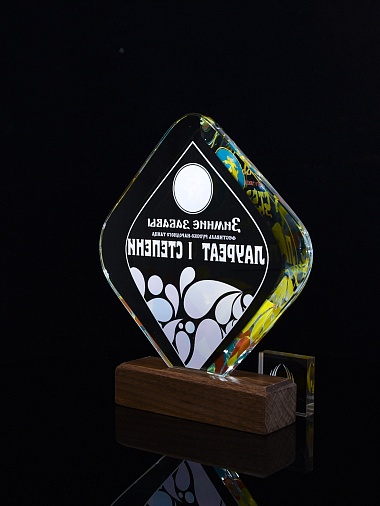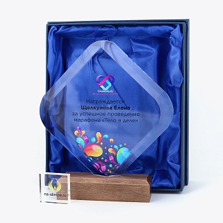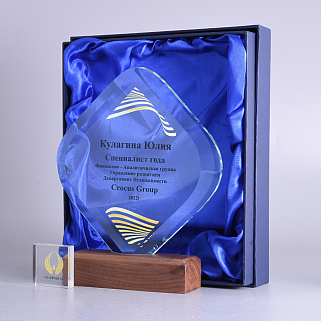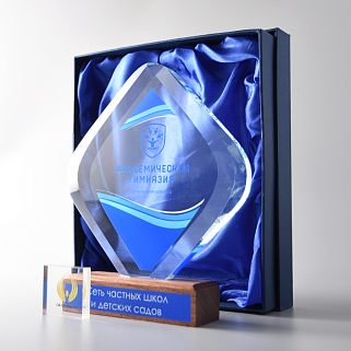 Закажите к награде дополнительно стеклянную медаль. Получится красивый солидный комплект!