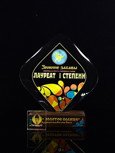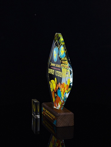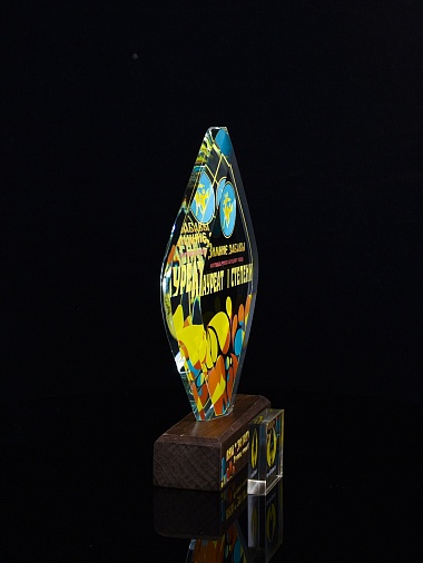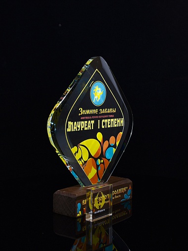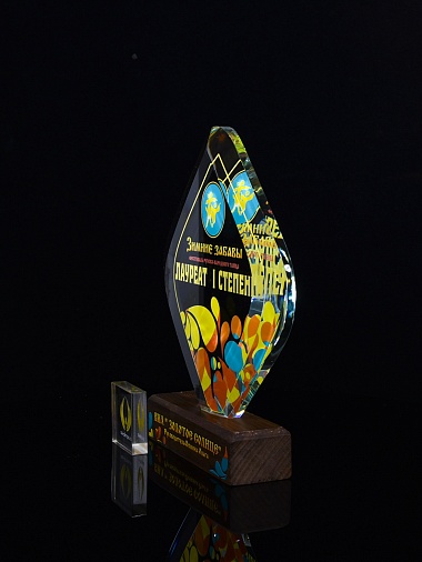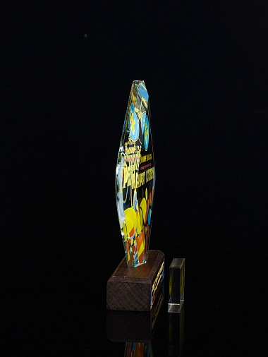 Стеклянная награда C69-130 с цветным нанесением, высота 20 см