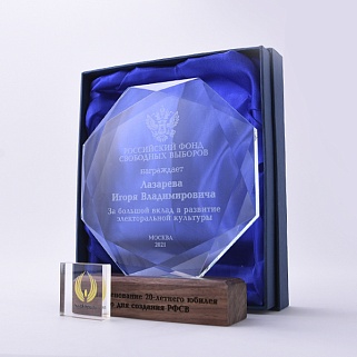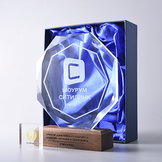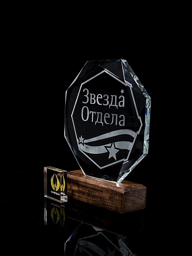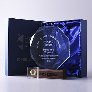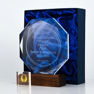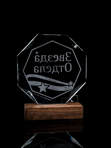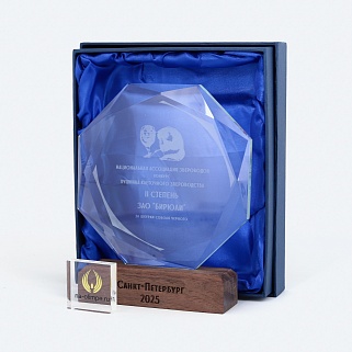Закажите к награде дополнительно стеклянную медаль. Получится красивый солидный комплект!