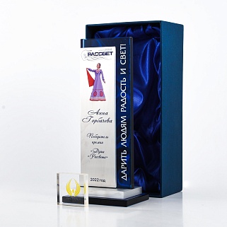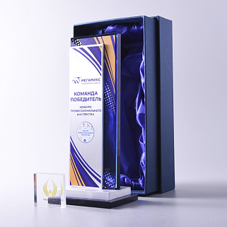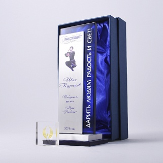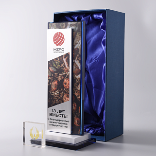 Закажите к награде дополнительно стеклянную медаль. Получится красивый солидный комплект!
