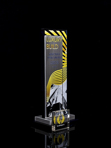 Стеклянная награда с полноцветным нанесением. Толщина стекла 10 мм. Поставляется в комплекте с подарочным футляром. Вес награды без футляра 620гр. Стоимость указана за нанесение на одной стороне, печать выполняется на задней стенке награды.