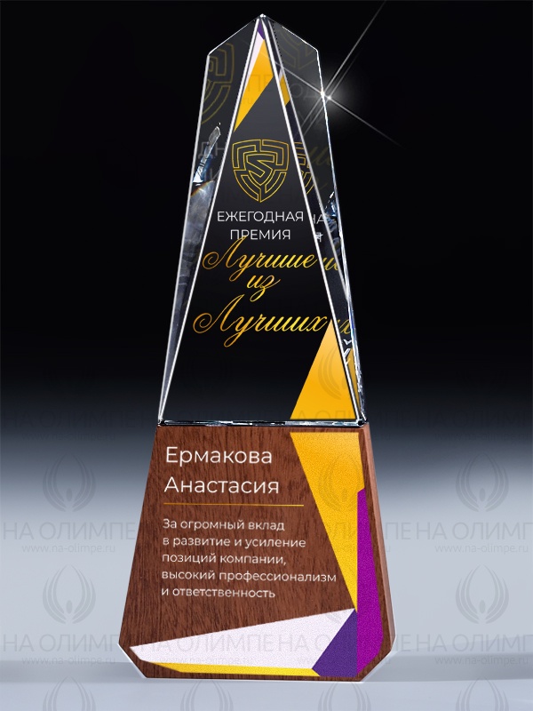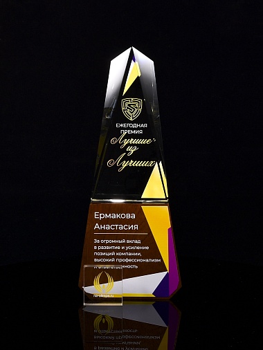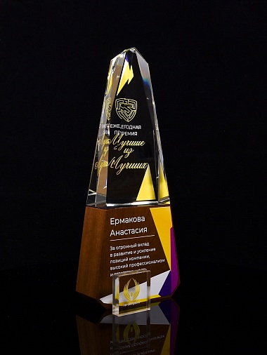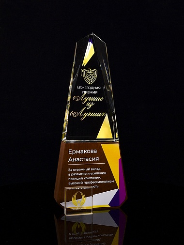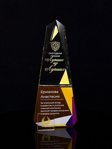 Стеклянная награда C78-235 с цветным нанесением, высота 26.5 см