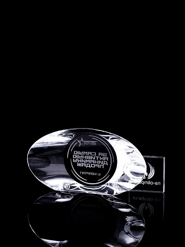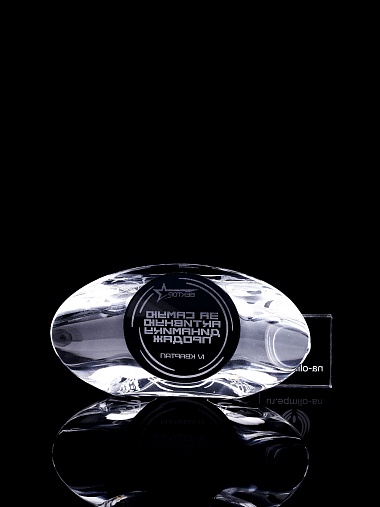 Награда из оптического стекла с гравировкой. Поставляется в комплекте с подарочным футляром. Вес награды без футляра 455гр. Стоимость указана за нанесение на одной стороне. Возможность нанесения на дополнительной стороне и стоимость этих работ можно уточнить у менеджеров. Стоимость указана за нанесение на одной стороне, гравировка выполняется на задней стенке награды.