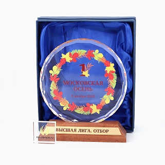 Стеклянная награда с полноцветным нанесением. Толщина стекла 15 мм. Может доукомплектовываться металлической или заливной табличкой с текстом и рисунком. Табличка в комплект не входит и заказывается отдельно. Награда поставляется в комплекте с подарочным футляром. Вес награды без футляра 1080гр. Стоимость указана за нанесение на одной стороне, печать выполняется на задней стенке награды. Возможность нанесения на дополнительной стороне и стоимость этих работ можно уточнить у менеджеров.