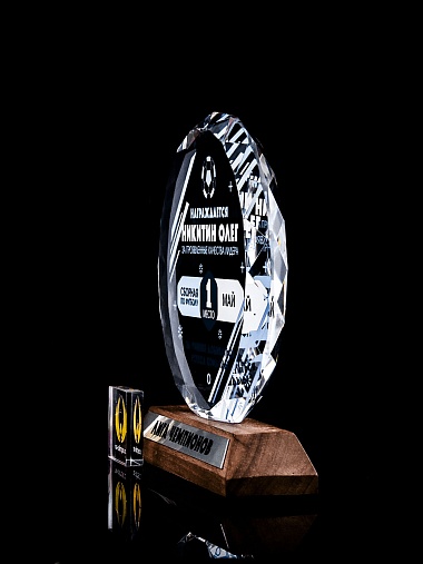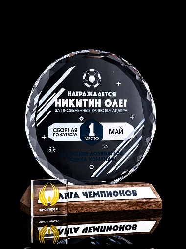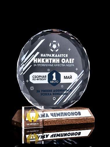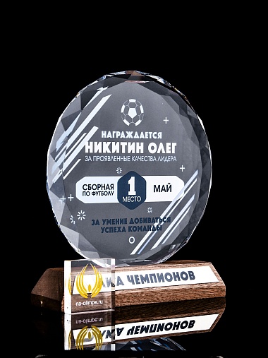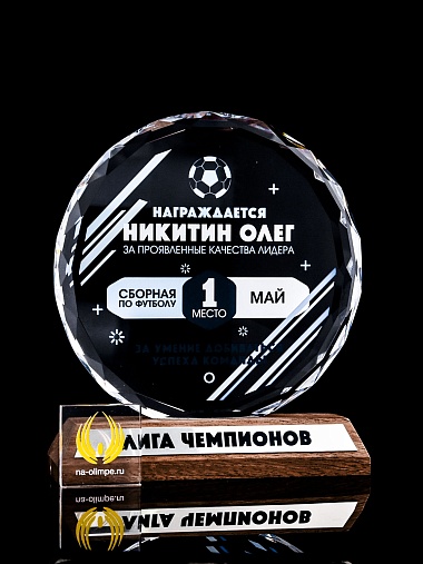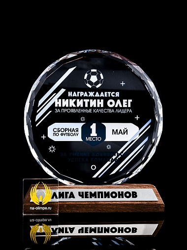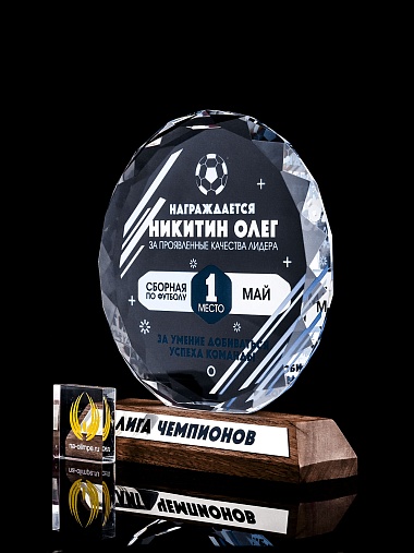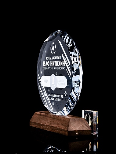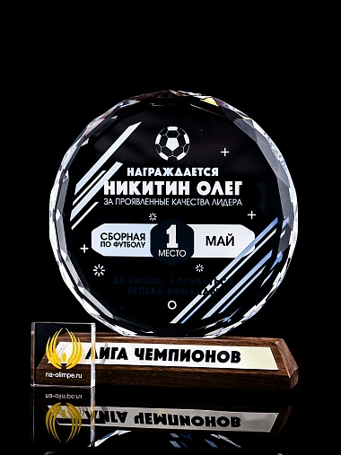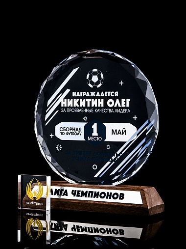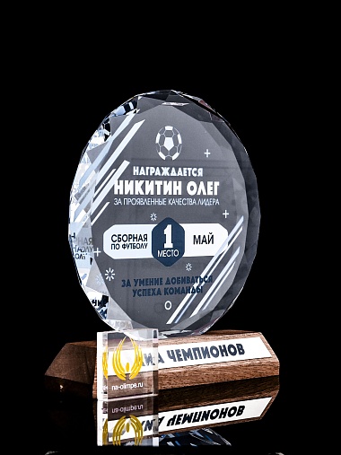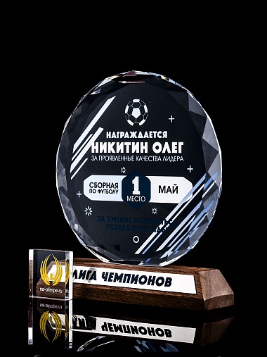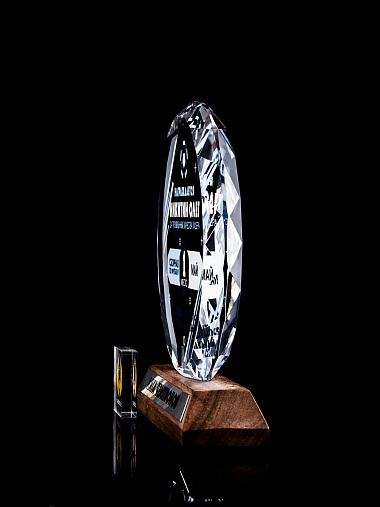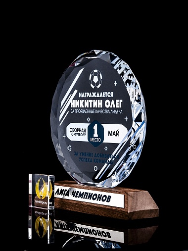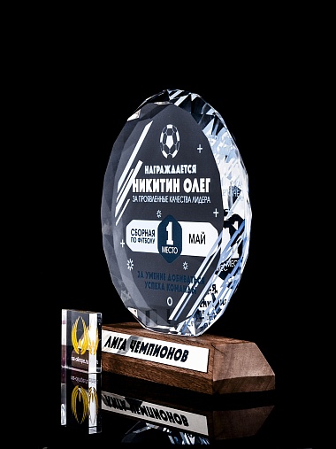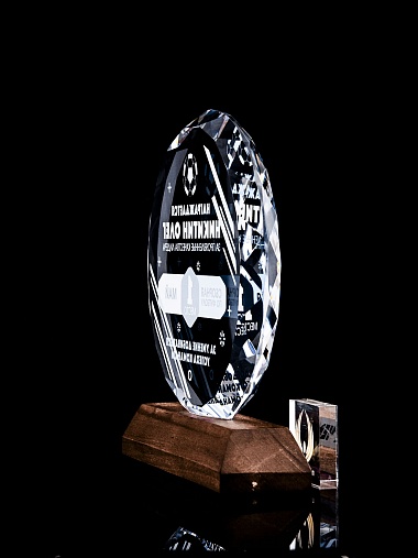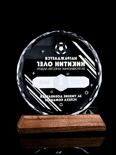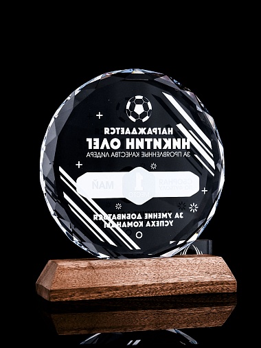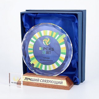 Стеклянная награда с полноцветным нанесением. Толщина стекла 15 мм. Может доукомплектовываться металлической или заливной табличкой с текстом и рисунком. Табличка в комплект не входит и заказывается отдельно. Награда поставляется в комплекте с подарочным футляром. Вес награды без футляра 1080гр. Стоимость указана за нанесение на одной стороне. печать выполняется на задней стенке награды. Есть возможность цветного нанесения или гравировки на деревянном элементе награды. Стоимость дополнительного нанесения - по запросу у менеджера.