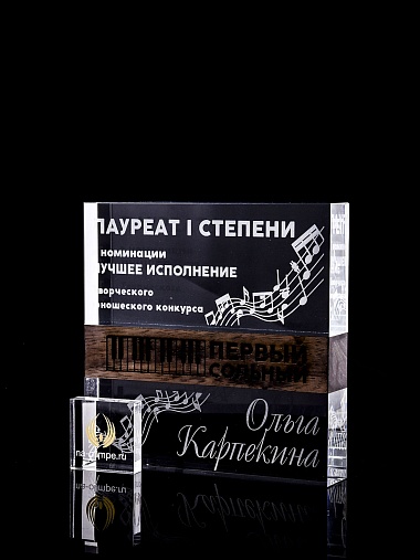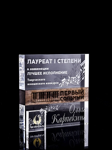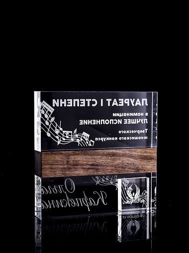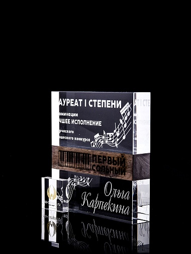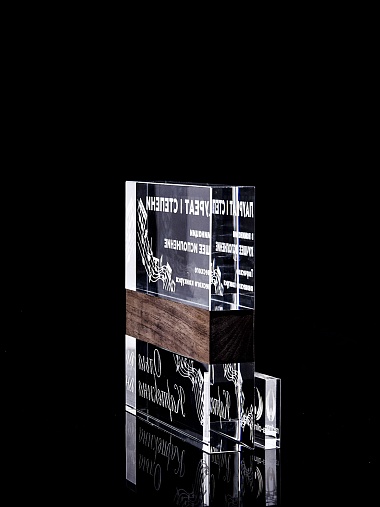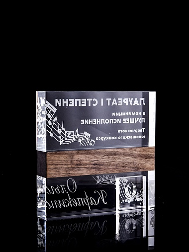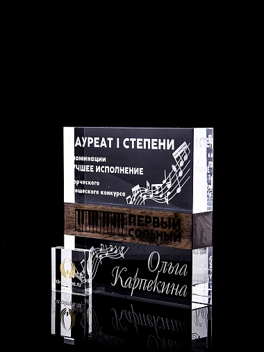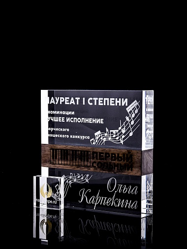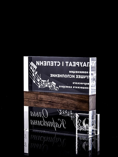 Стеклянная награда с гравировкой. Толщина стекла 27 мм. Поставляется в комплекте с подарочным футляром. Вес награды без футляра 1350гр. Возможность нанесения на дополнительной стороне и стоимость этих работ можно уточнить у менеджеров. Стоимость указана за нанесение на одной стороне, гравировка выполняется на задней стенке награды.
