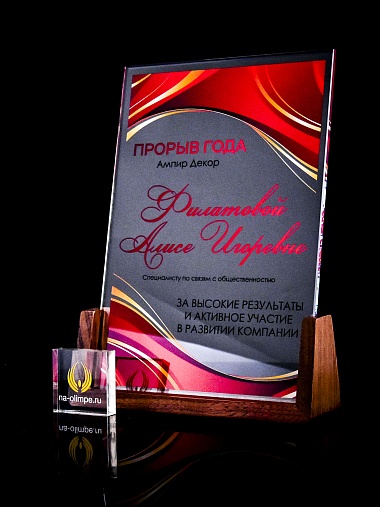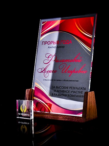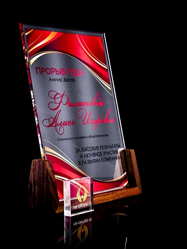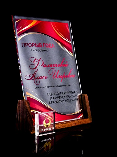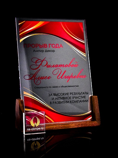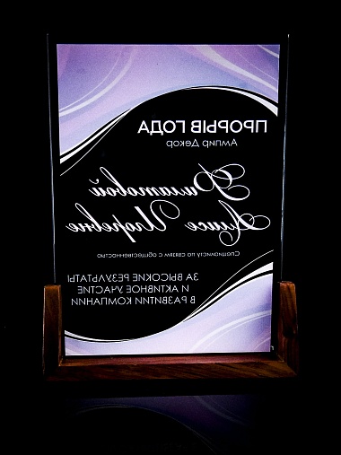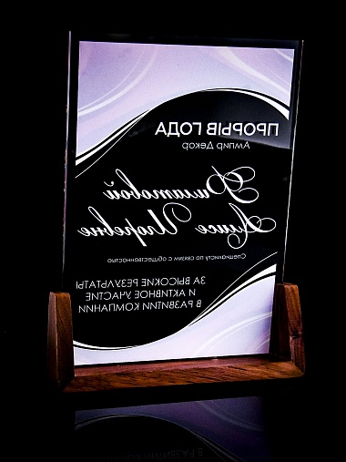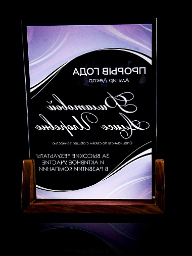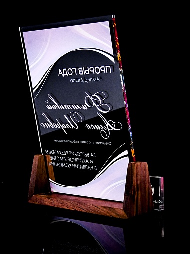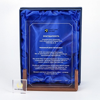 Стеклянная награда с полноцветным нанесением. Толщина стекла 5 мм. Поставляется в комплекте с подарочным футляром. Вес награды без футляра 448гр. Стоимость указана за нанесение на одной стороне, печать выполняется на задней стенке награды