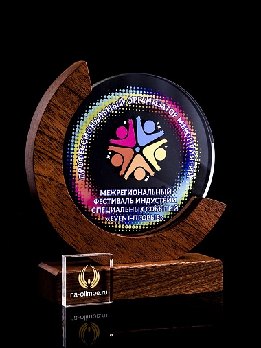 Стеклянная награда HRW231 с цветным нанесением, высота 19 см