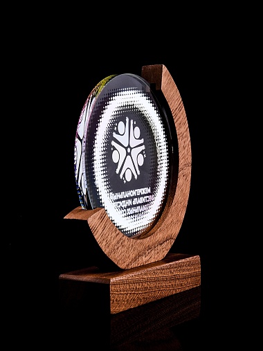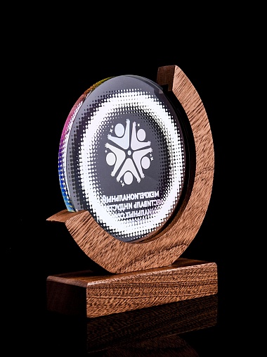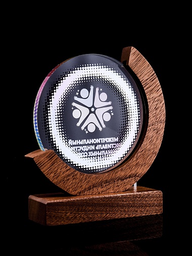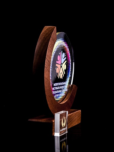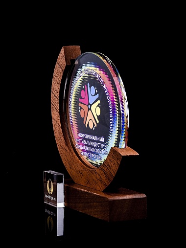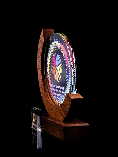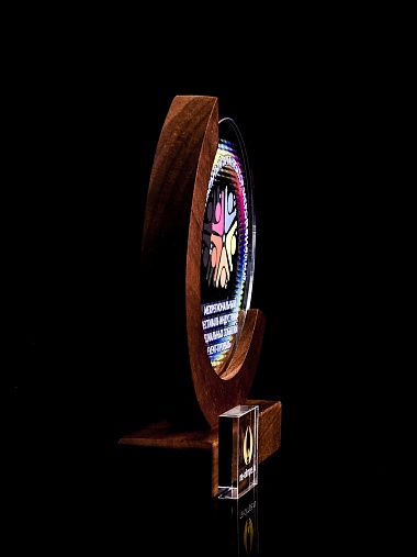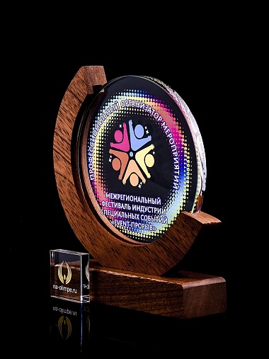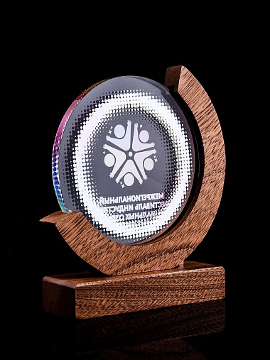 Стеклянная награда с полноцветным нанесением. Толщина стекла 10 мм. Может доукомплектовываться металлической, пластиковой или заливной табличкой с текстом и рисунком. Табличка в комплект не входит и заказывается отдельно. Награда поставляется в комплекте с подарочным футляром. Вес награды без футляра 607гр. Стоимость указана за нанесение на одной стороне, печать выполняется на задней стенке награды Есть возможность цветного нанесения или гравировки на деревянном элементе награды. Стоимость дополнительного нанесения - по запросу у менеджера.