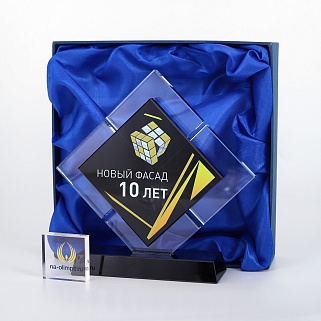 Стеклянная награда с полноцветным нанесением. Толщина стекла 20 мм. Поставляется в комплекте с подарочным футляром. Вес награды без футляра 830гр. Стоимость указана за нанесение на одной стороне, печать выполняется на задней стенке награды