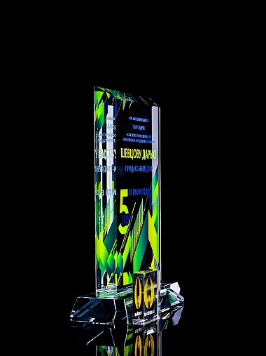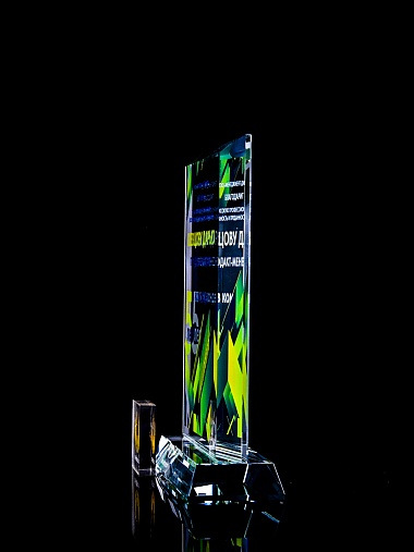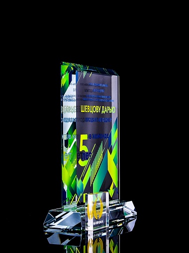 Стеклянная награда C99 с цветным нанесением, высота 18.5 см