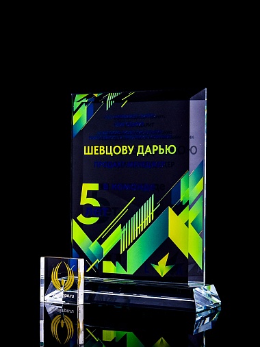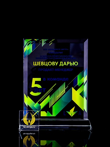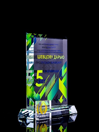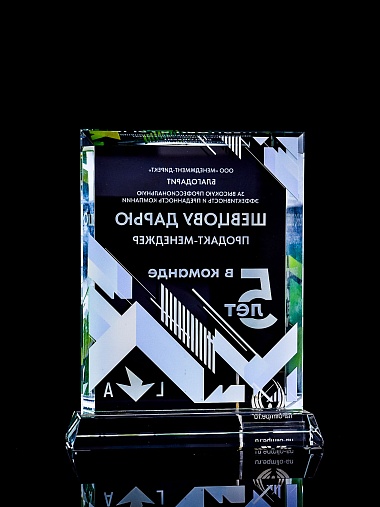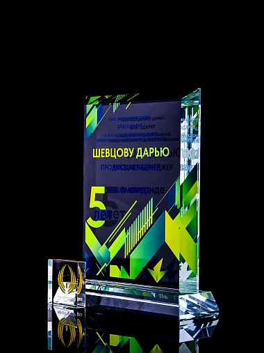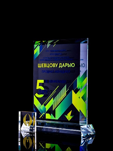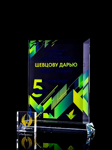 Закажите к награде дополнительно стеклянную медаль. Получится красивый солидный комплект!