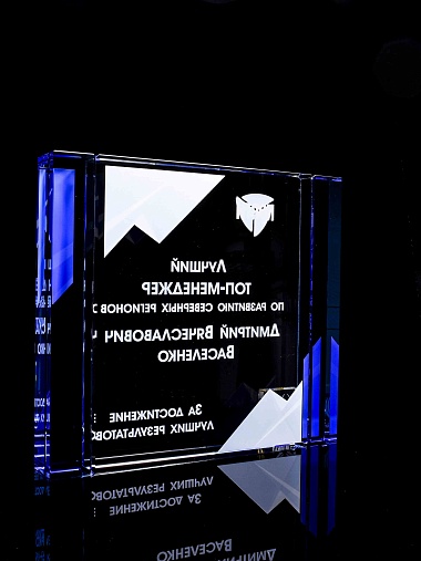 Стеклянная награда C9-203 с цветным нанесением, высота 20.3 см