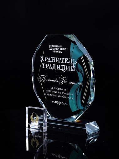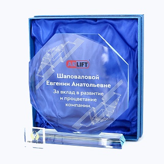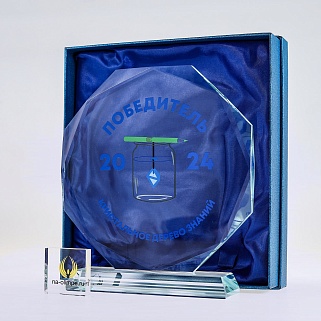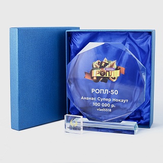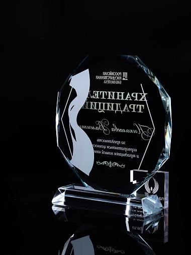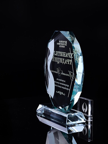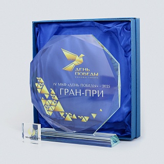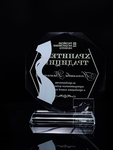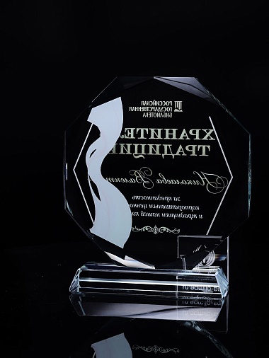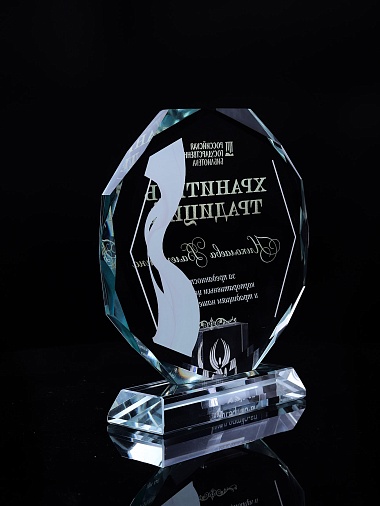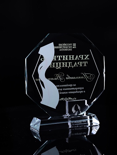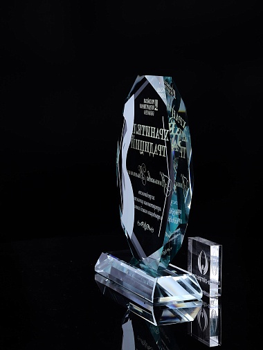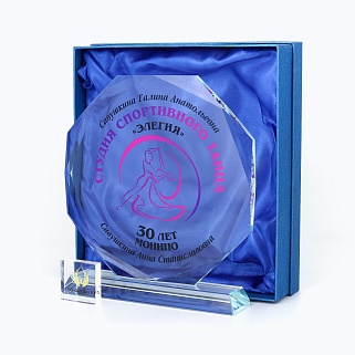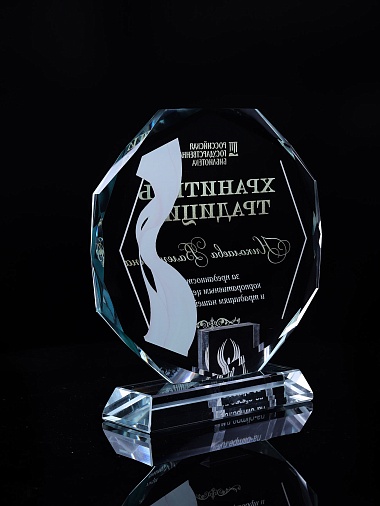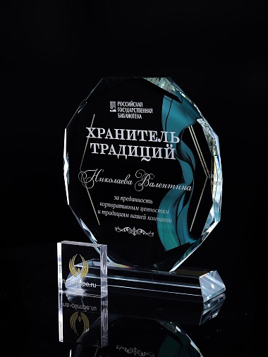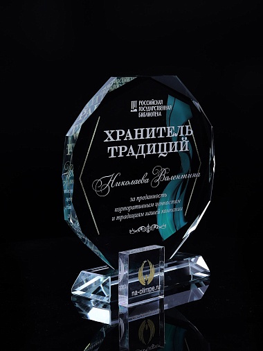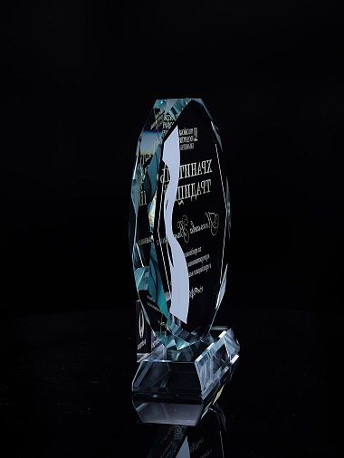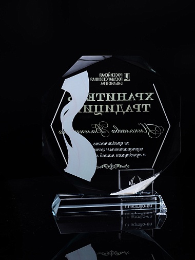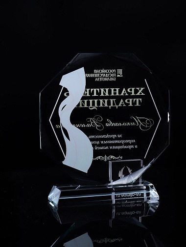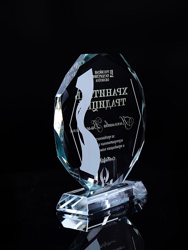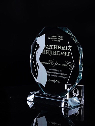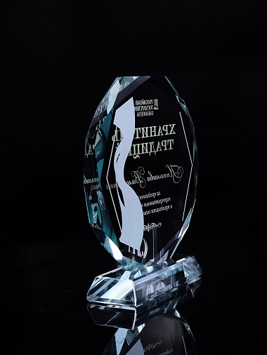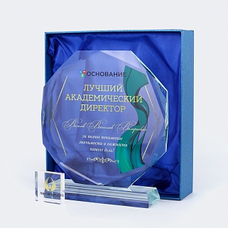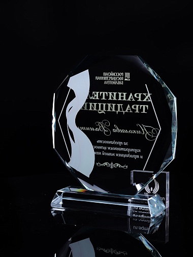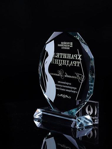 Стеклянная награда с полноцветным нанесением. Толщина стекла 15 мм.Поставляется в комплекте с подарочным футляром. Вес награды без футляра 870гр.Стоимость указана за нанесение на одной стороне, печать выполняется на задней стенке награды.