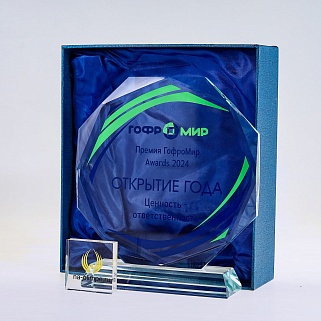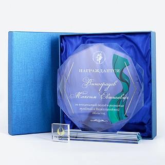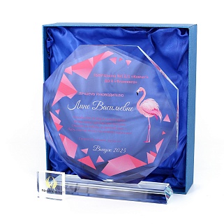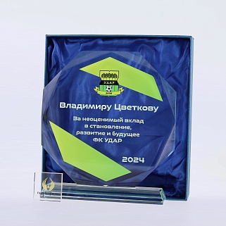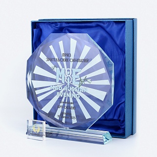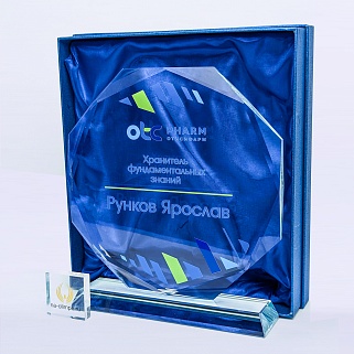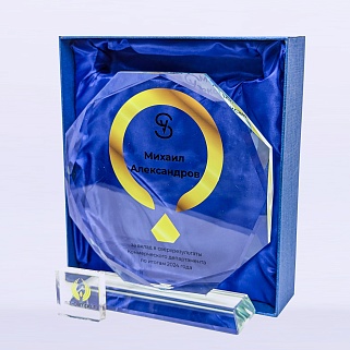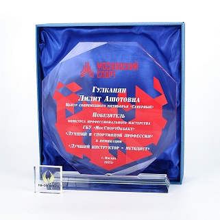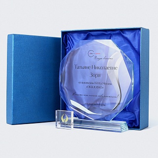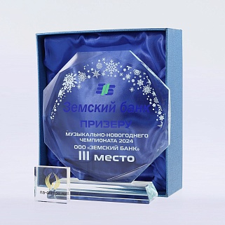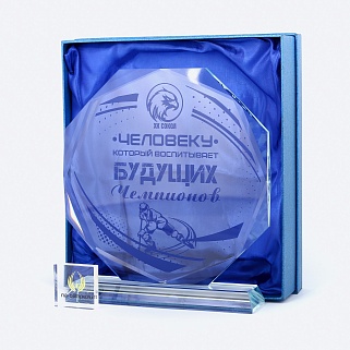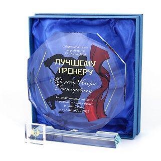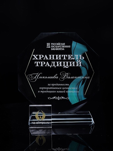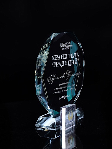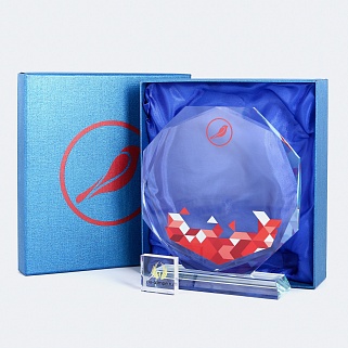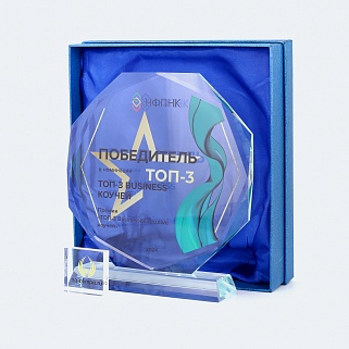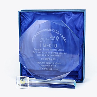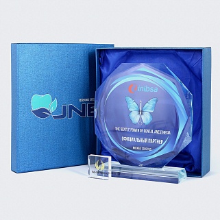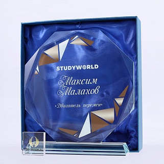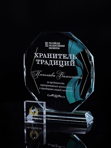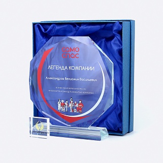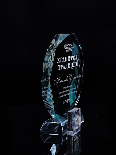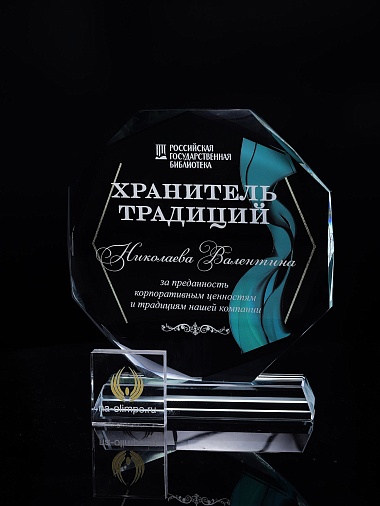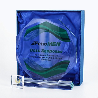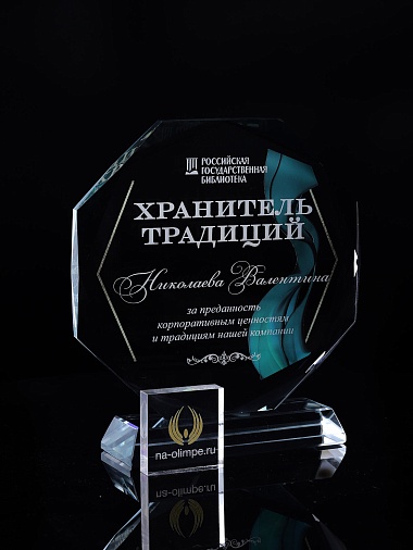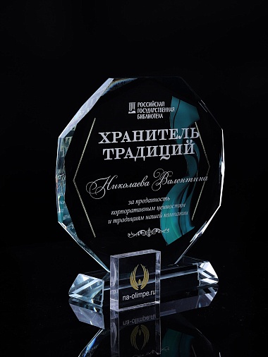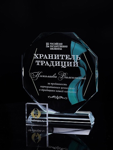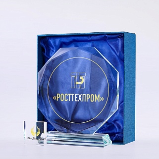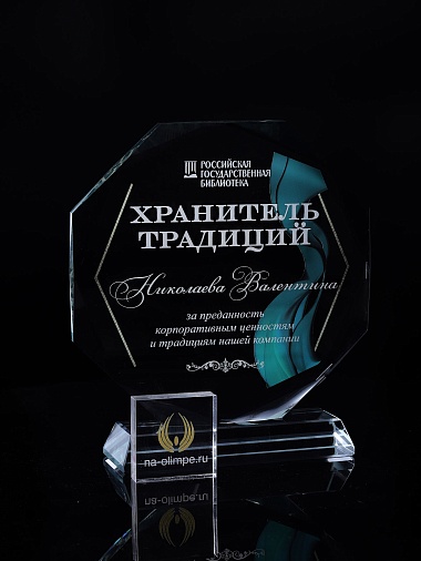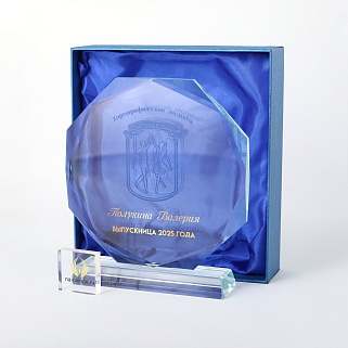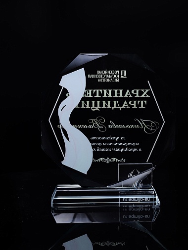 Стеклянная награда с полноцветным нанесением. Толщина стекла 15 мм.Поставляется в комплекте с подарочным футляром. Вес награды без футляра 870гр.Стоимость указана за нанесение на одной стороне, печать выполняется на задней стенке награды.