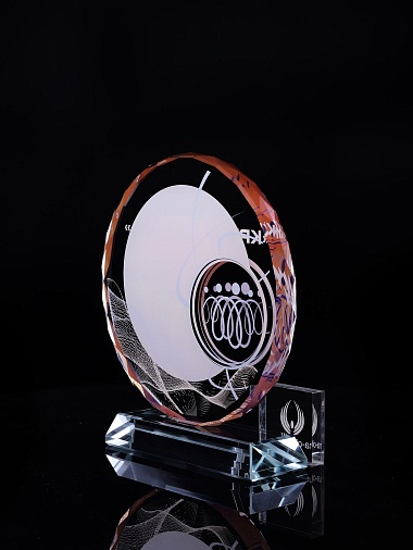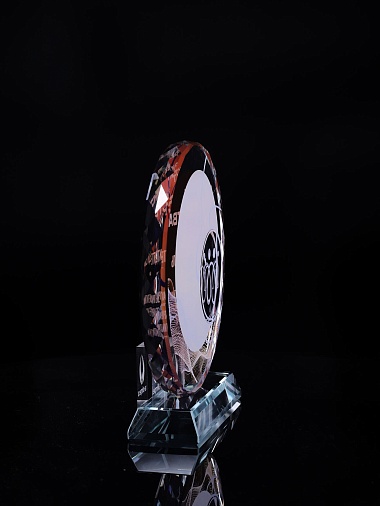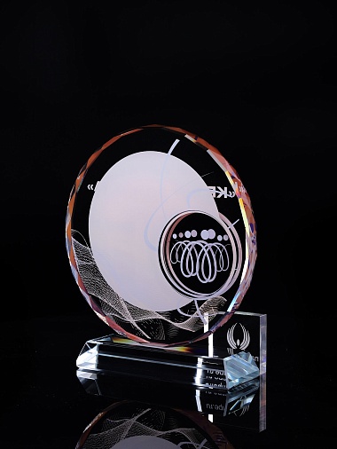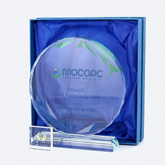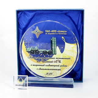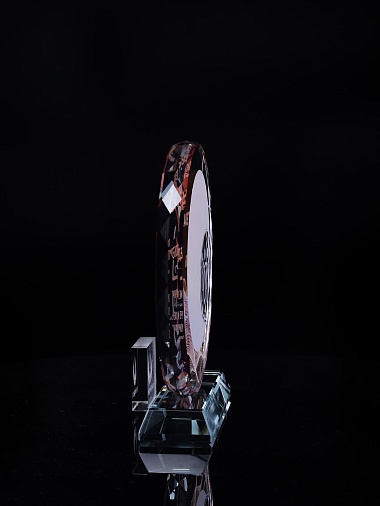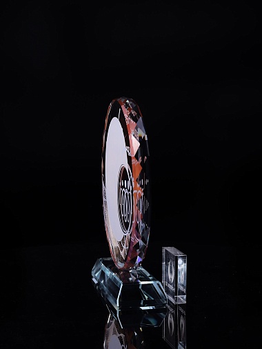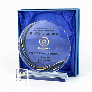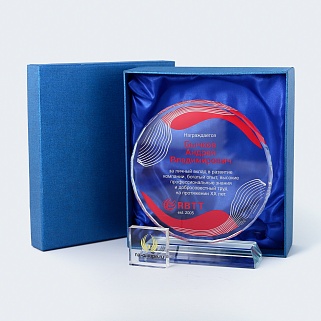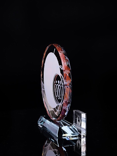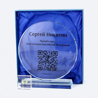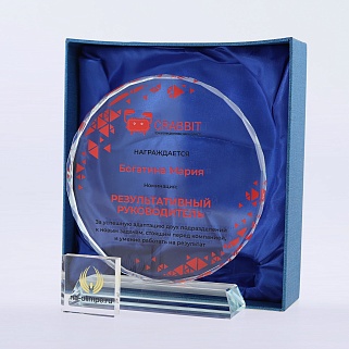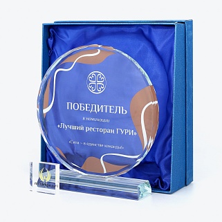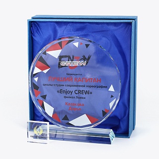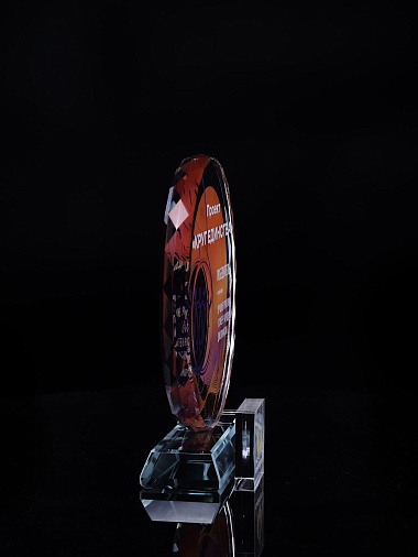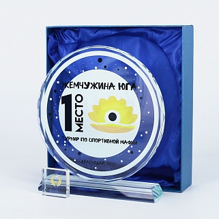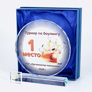 Стеклянная награда с полноцветным нанесением. Толщина стекла 15 мм.Поставляется в комплекте с подарочным футляром. Вес награды без футляра 1215гр.Стоимость указана за нанесение на одной стороне, печать выполняется на задней стенке награды.
