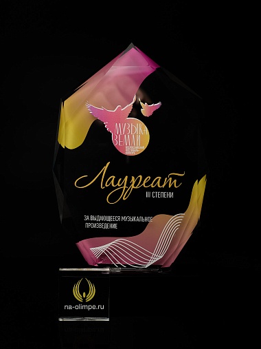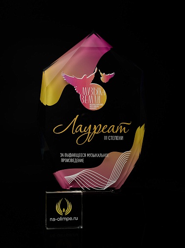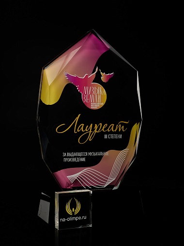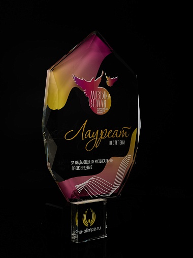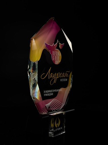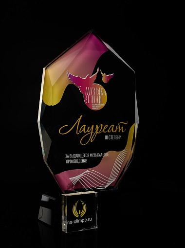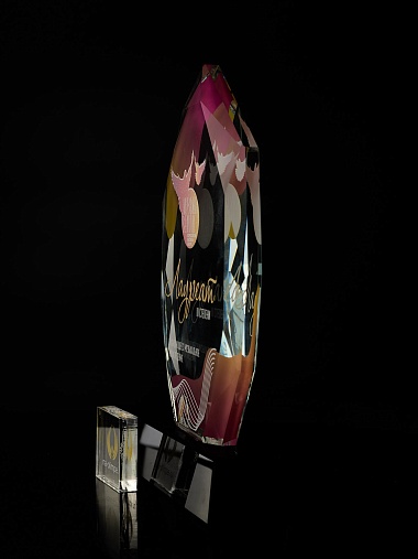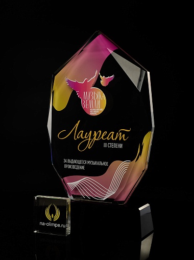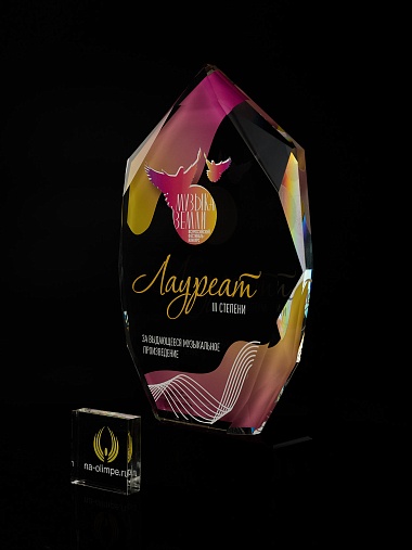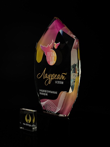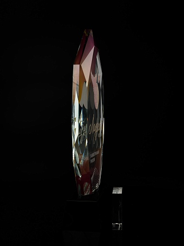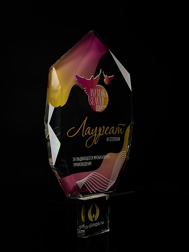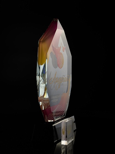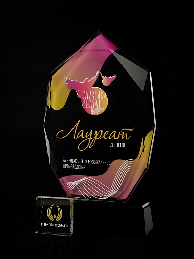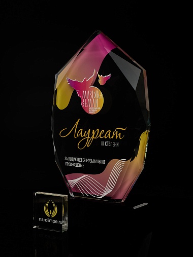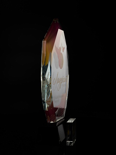 Стеклянная награда HRG11 с цветным нанесением, высота 24 см