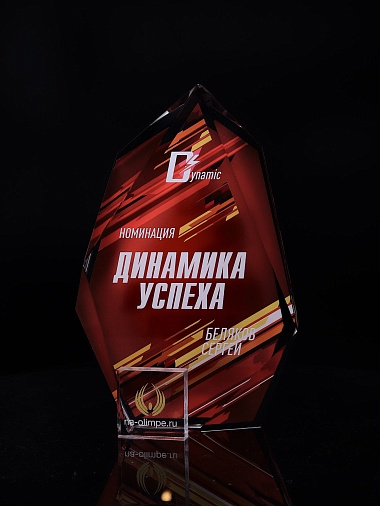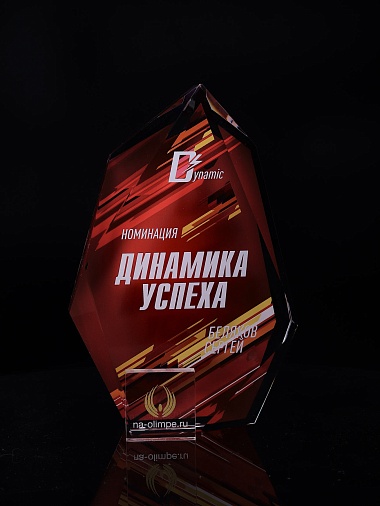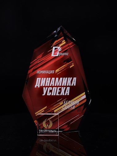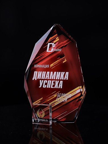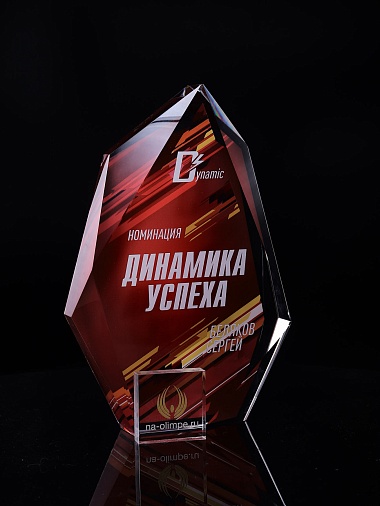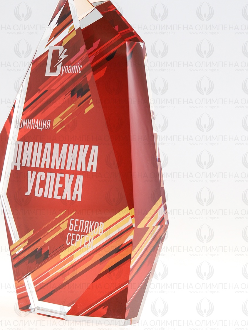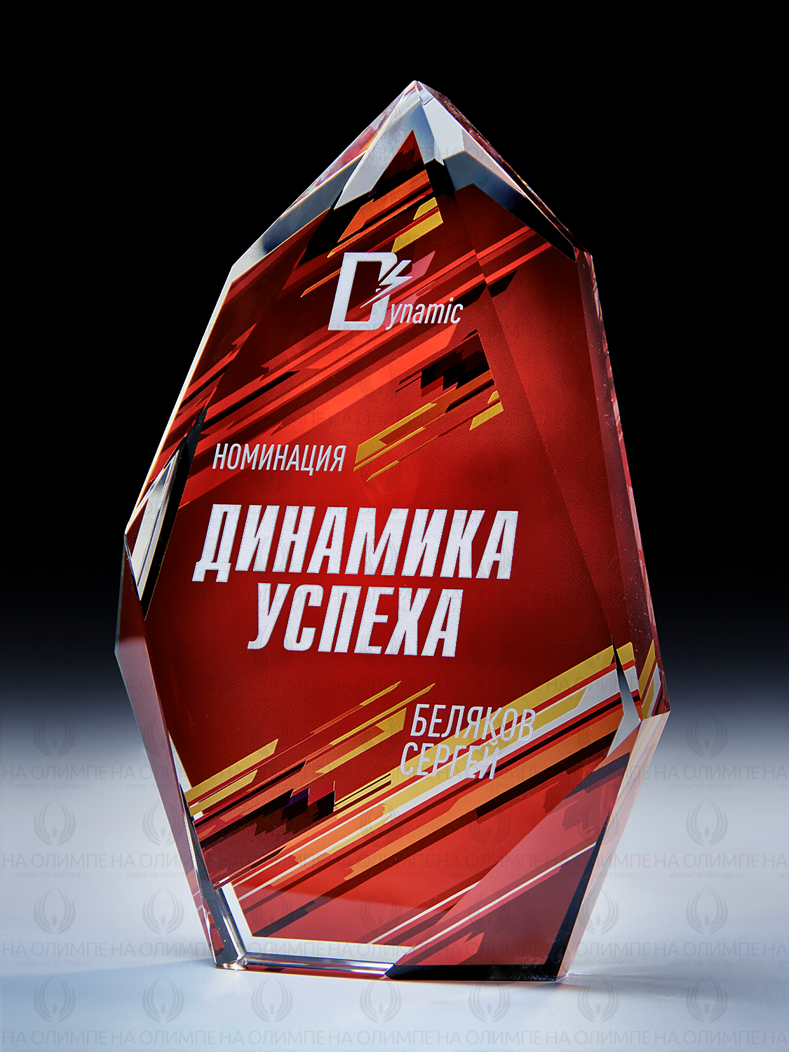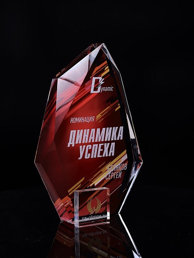 Стеклянная награда HRT25 с цветным нанесением , высота 20 см