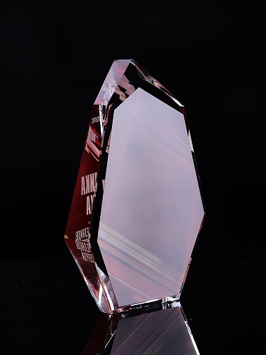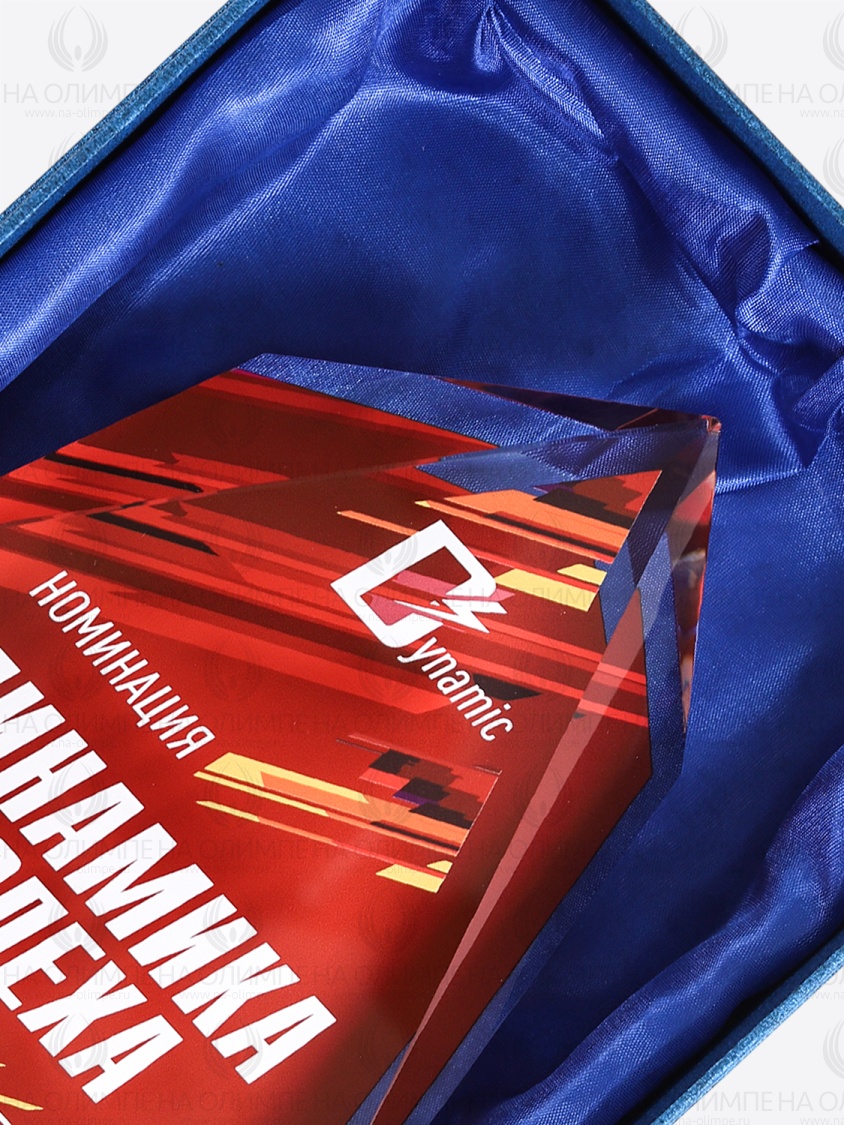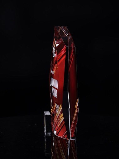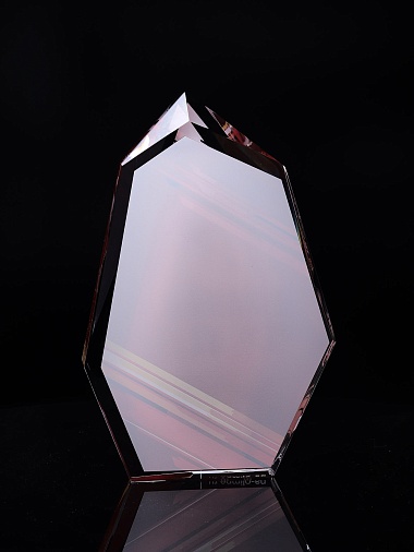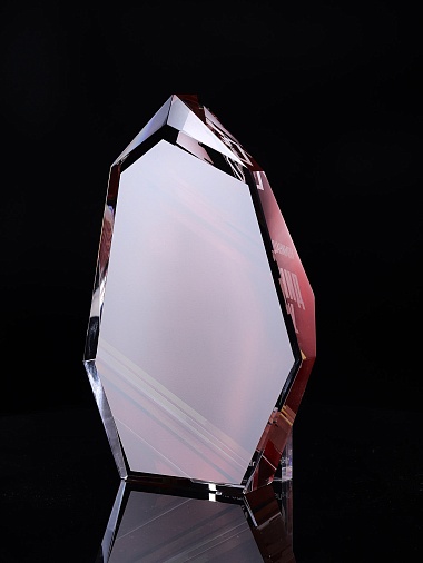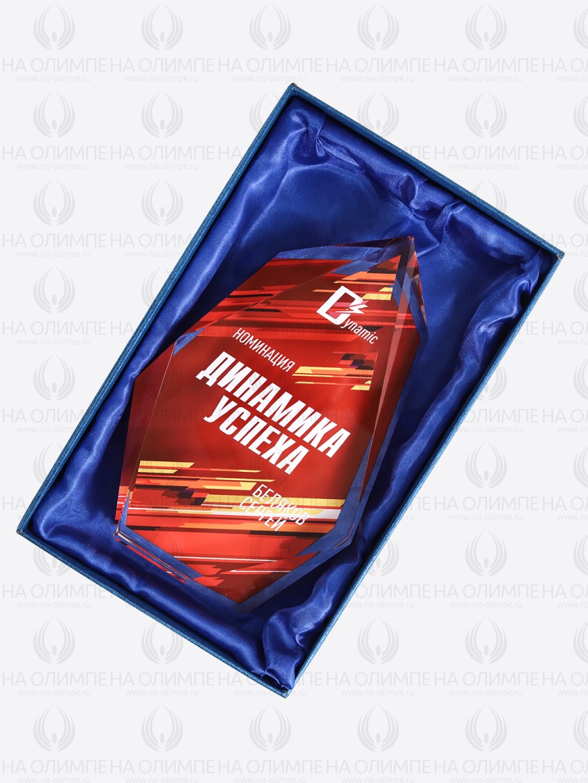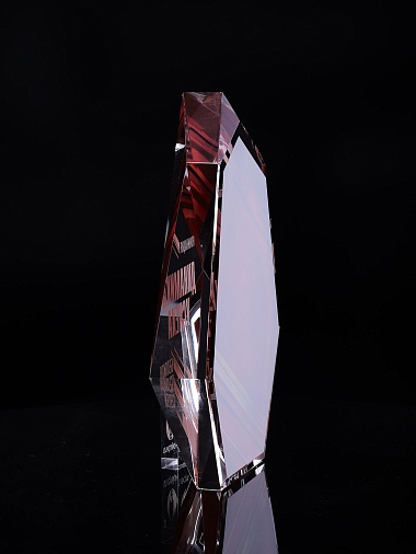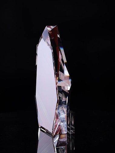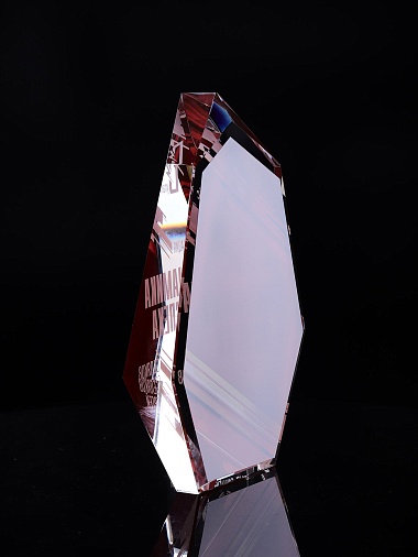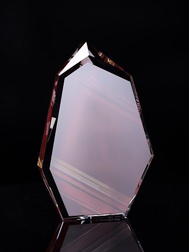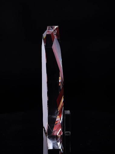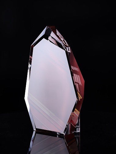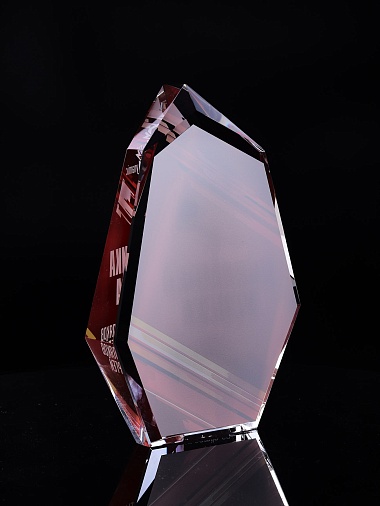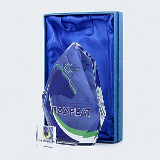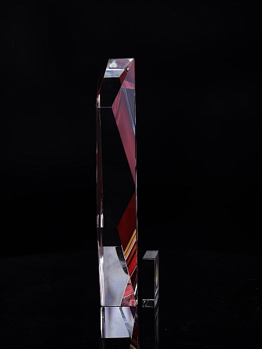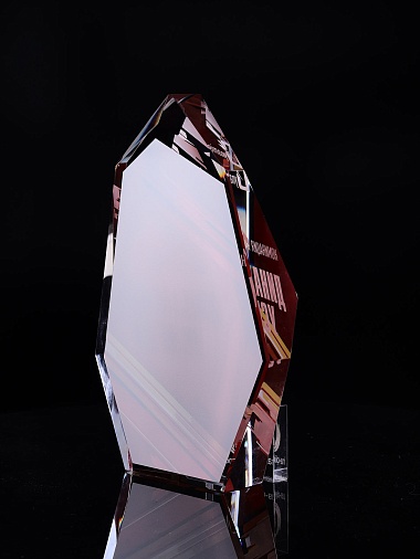 Стеклянная награда с полноцветным нанесением. Толщина стекла 30 мм. Поставляется в комплекте с подарочным футляром. Вес награды без футляра 1390гр. Стоимость указана за нанесение на одной стороне, печать выполняется на задней стенке награды.