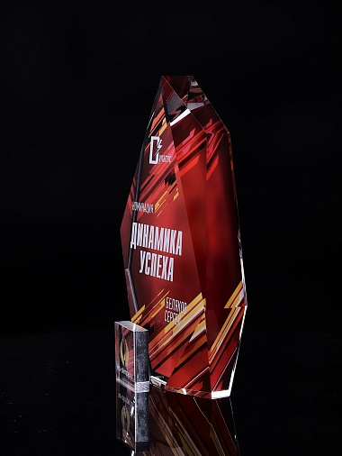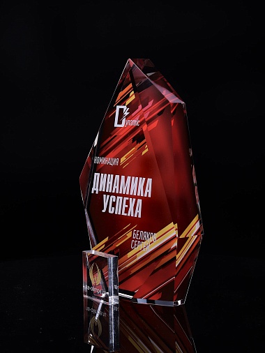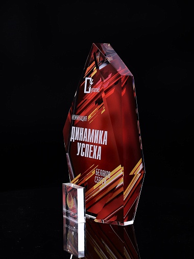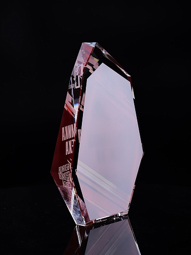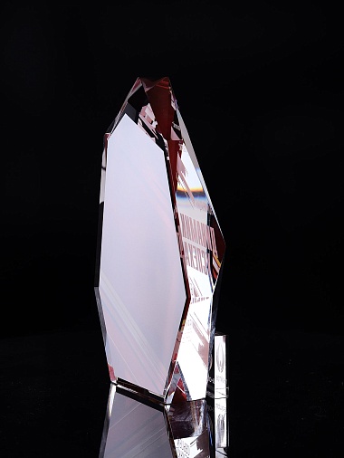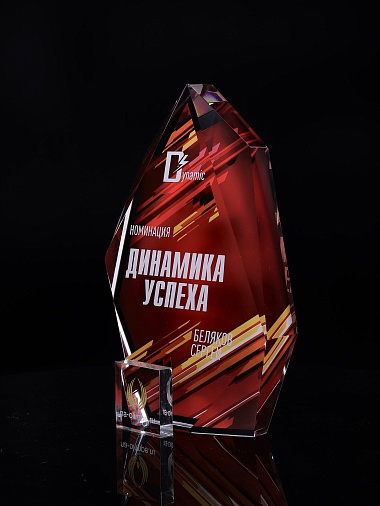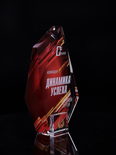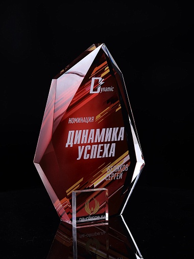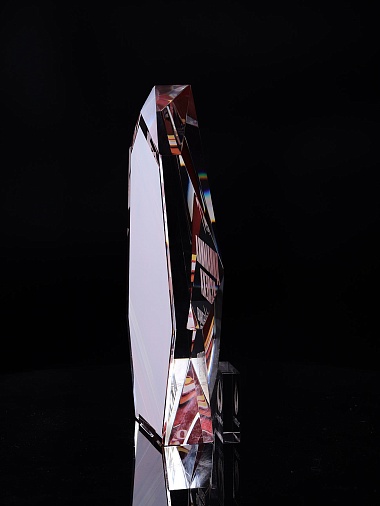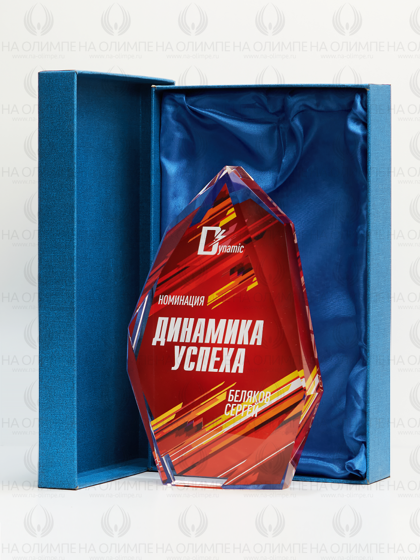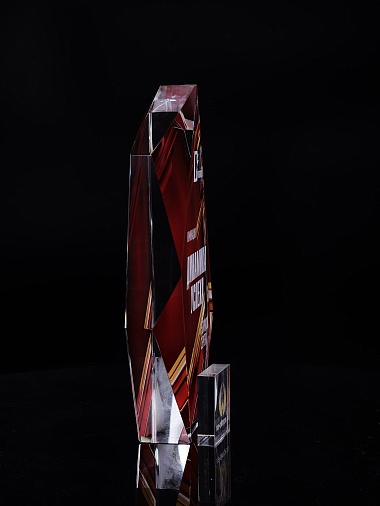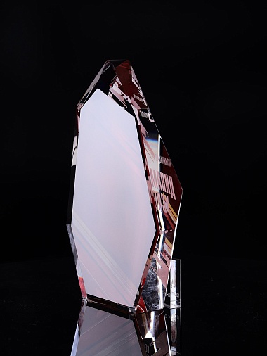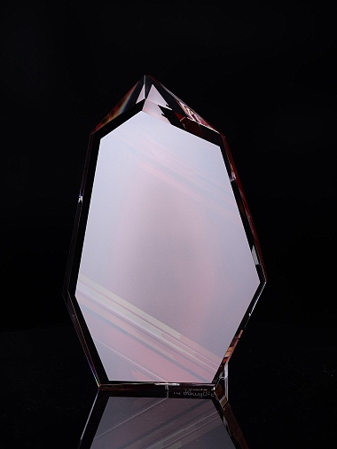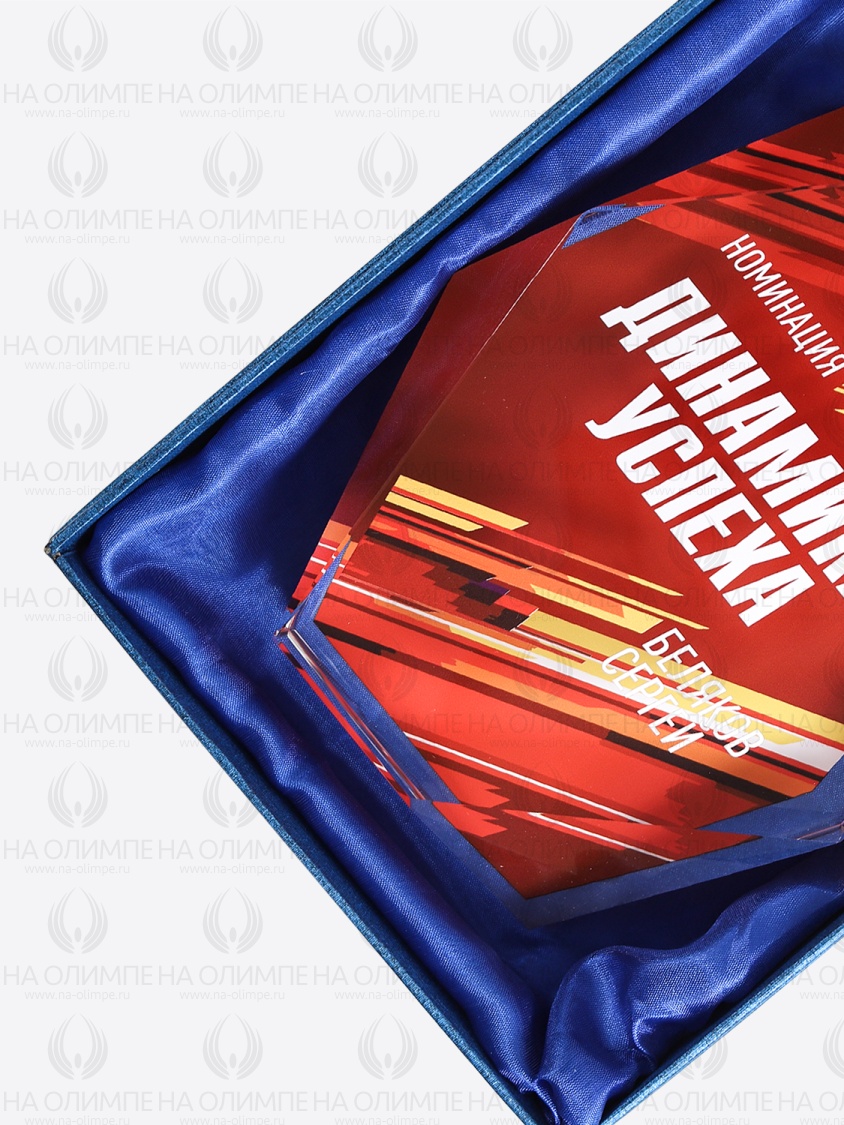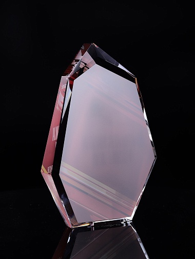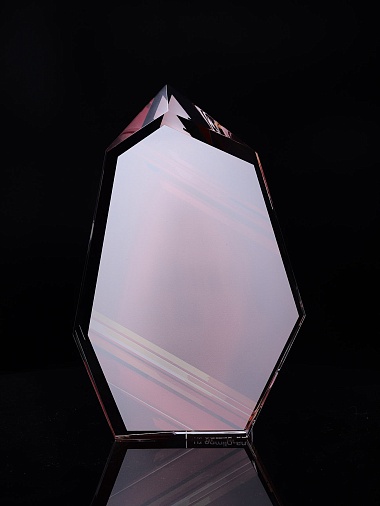 Стеклянная награда с полноцветным нанесением. Толщина стекла 30 мм. Поставляется в комплекте с подарочным футляром. Вес награды без футляра 1390гр. Стоимость указана за нанесение на одной стороне, печать выполняется на задней стенке награды.
