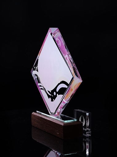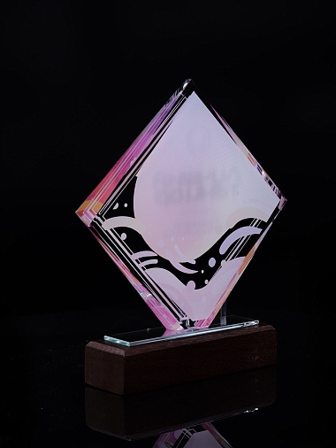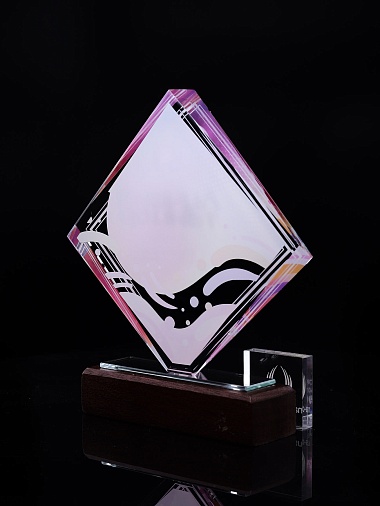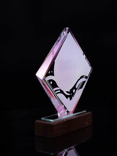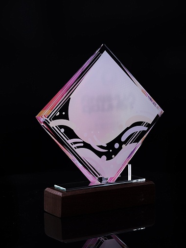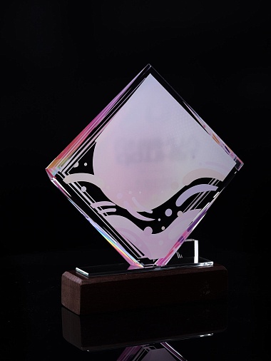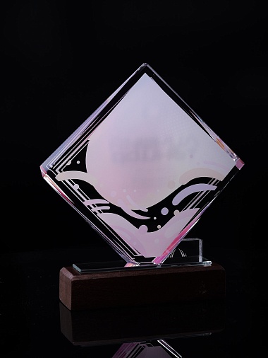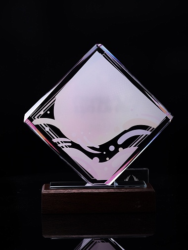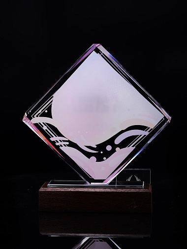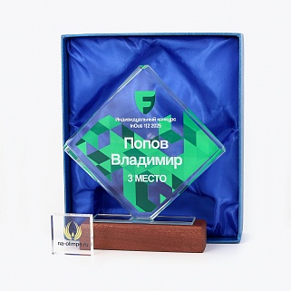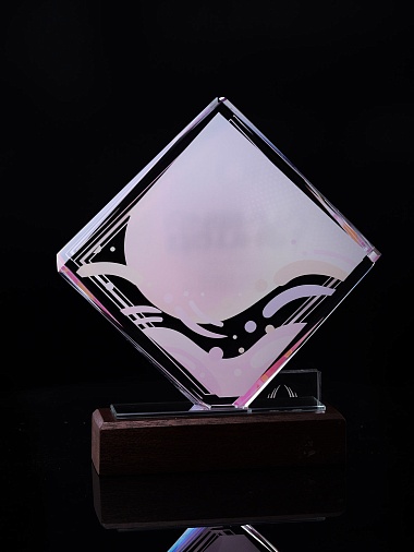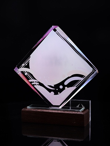 Стеклянная награда с полноцветным нанесением. Толщина стекла 16 мм. Награду можно доукомплектовывать металлической или заливной табличкой с текстом и рисунком. Табличка в комплект не входит и заказывается отдельно. Поставляется в комплекте с подарочным футляром. Вес награды без футляра 585гр. Стоимость указана за нанесение на одной стороне, печать выполняется на задней стенке награды.
