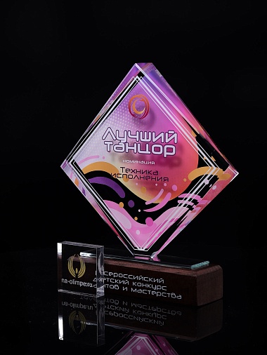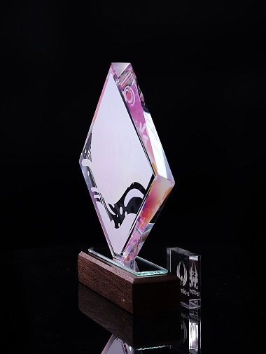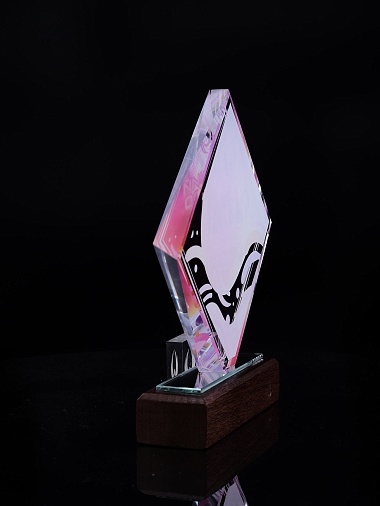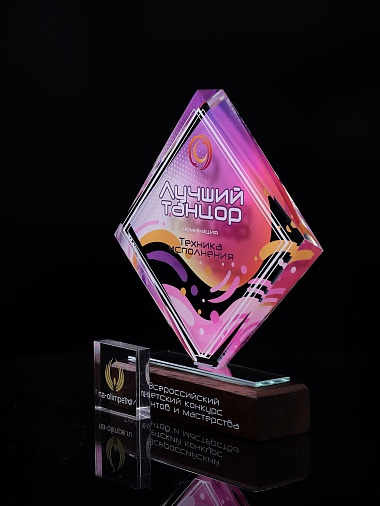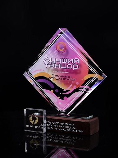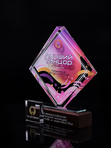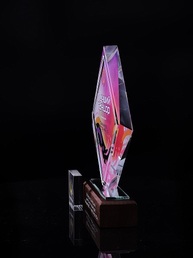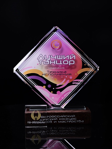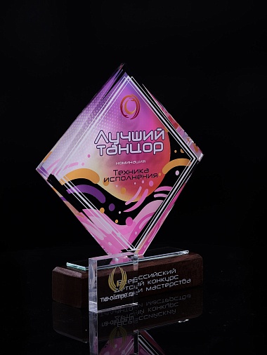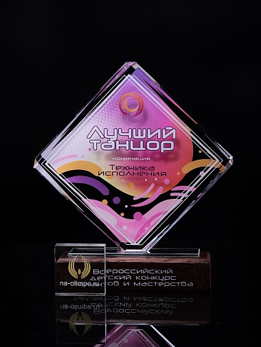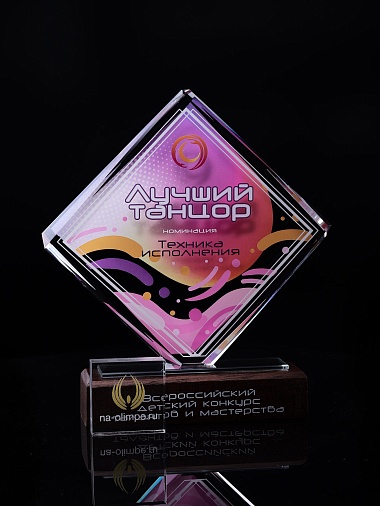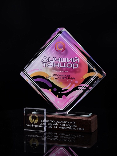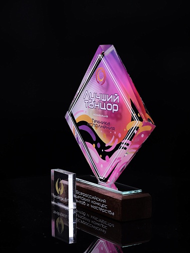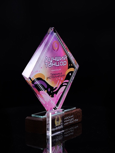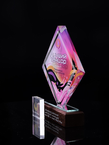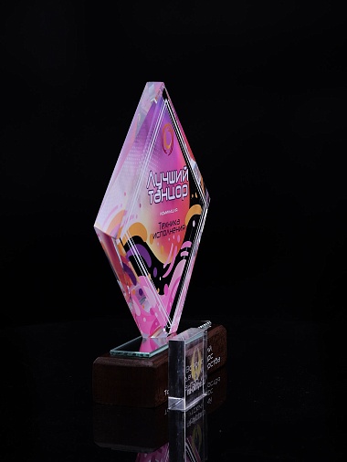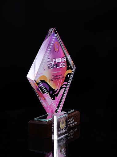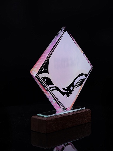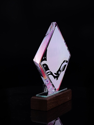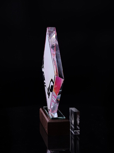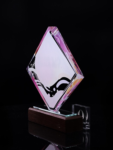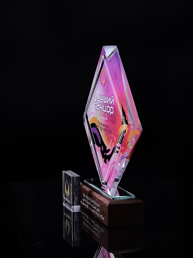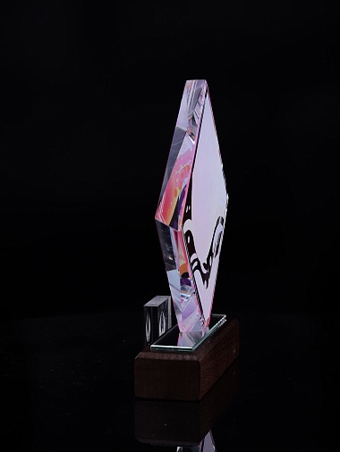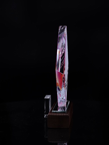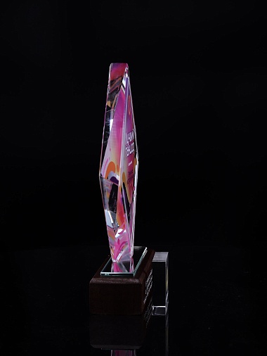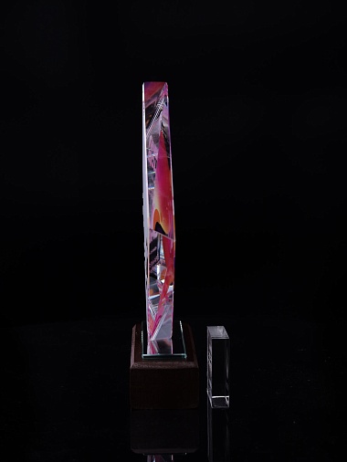 Стеклянная награда HRW213 с цветным нанесением, высота 18.5 см