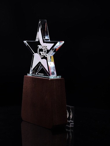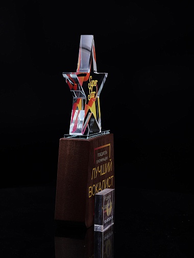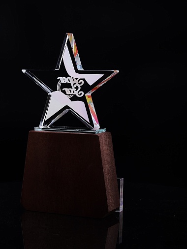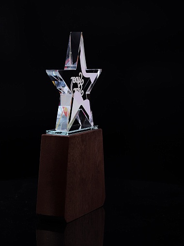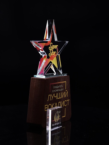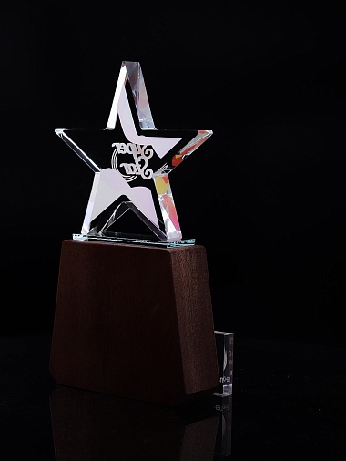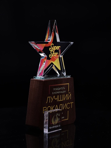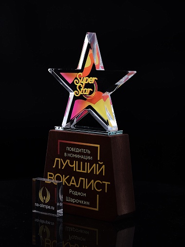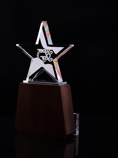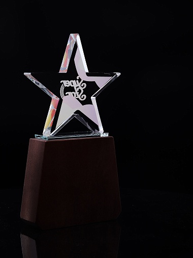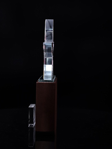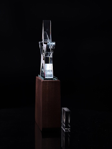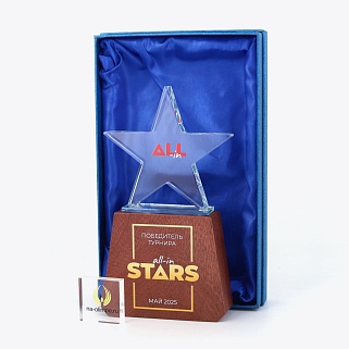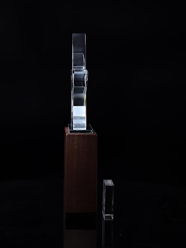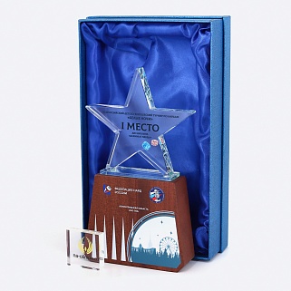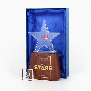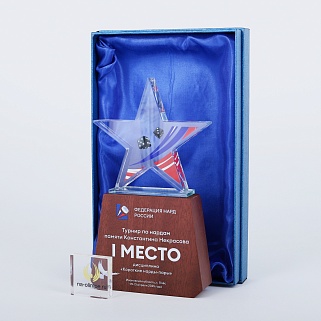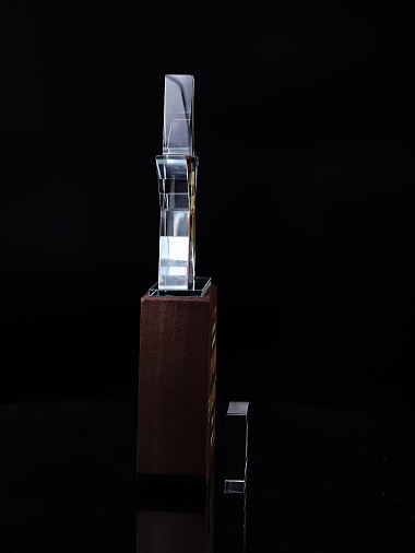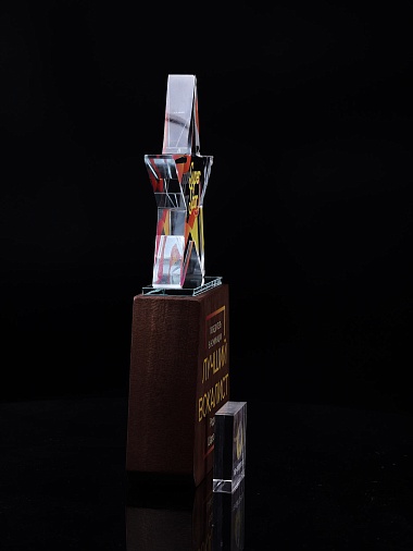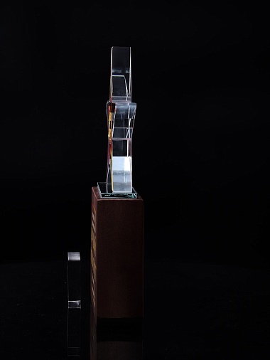 Награда из стекла и дерева с полноцветным нанесением по вашему запросу. Толщина стекла 15 мм. Вес награды без футляра 425гр.