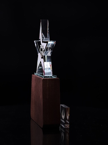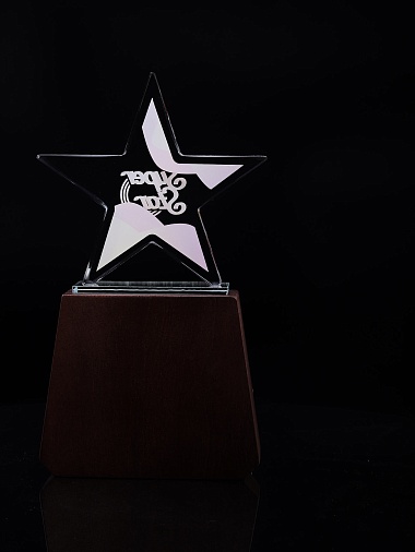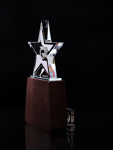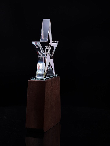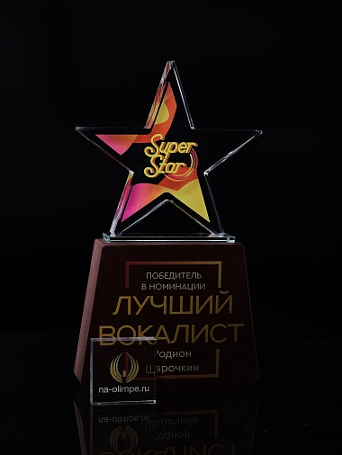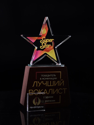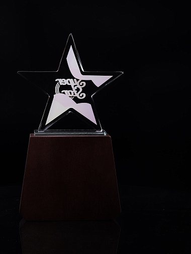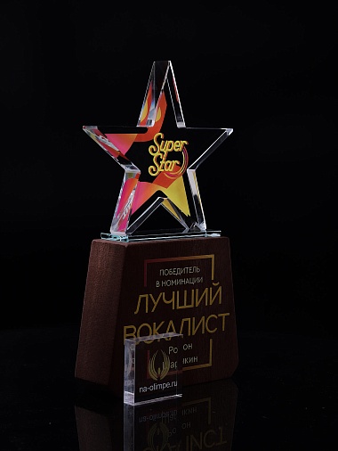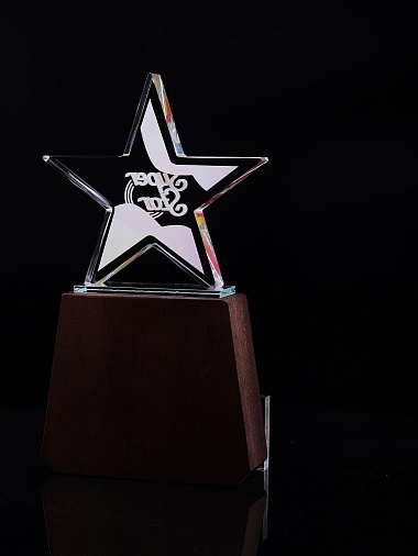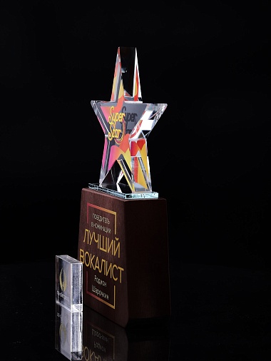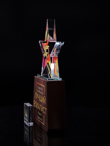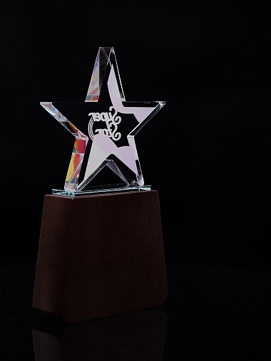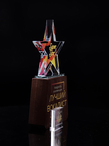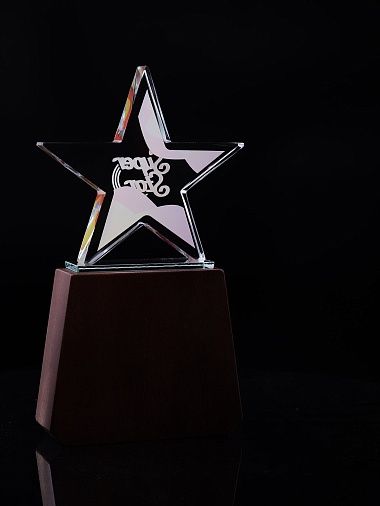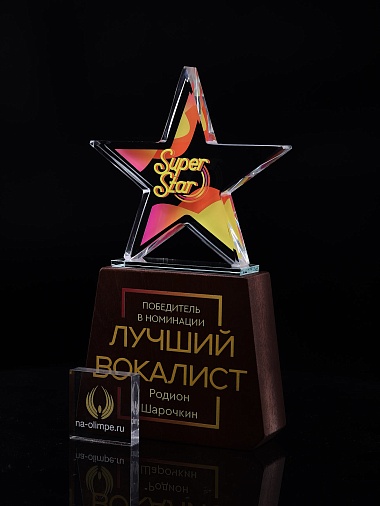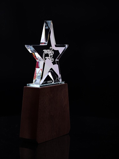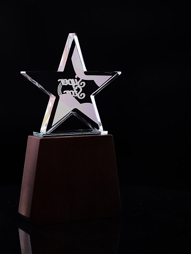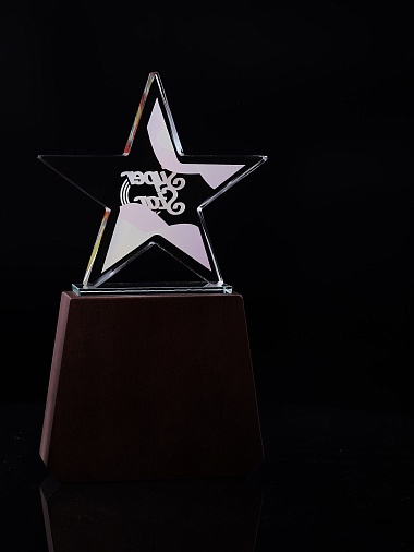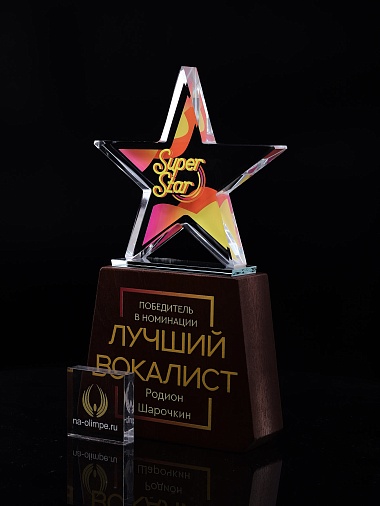 Награда из стекла и дерева с полноцветным нанесением по вашему запросу. Толщина стекла 15 мм. Вес награды без футляра 425гр.