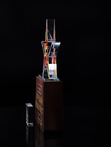 Стеклянная награда HRW237 с цветным нанесением, высота 21 см