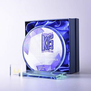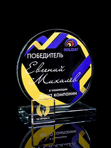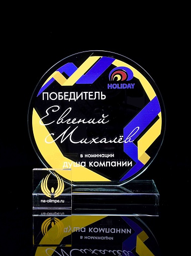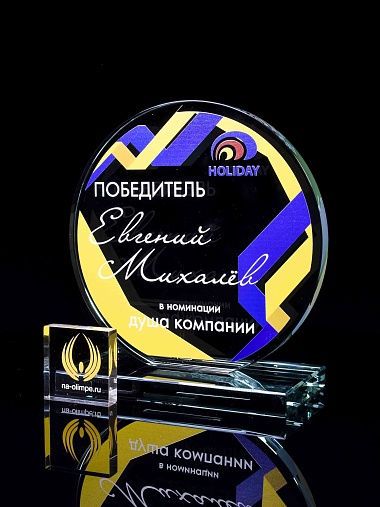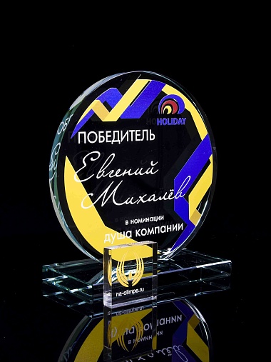 Стеклянная награда J15-210 с цветным нанесением, высота 20.9 см