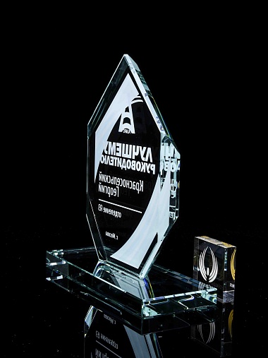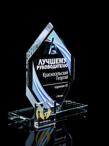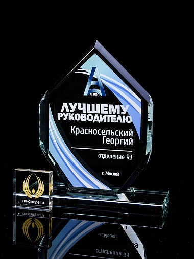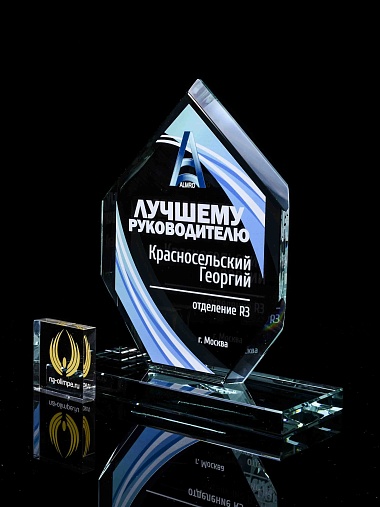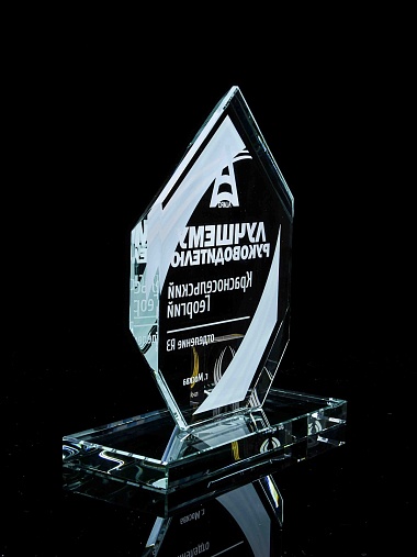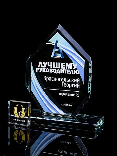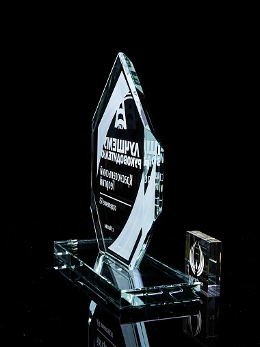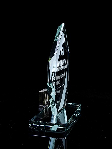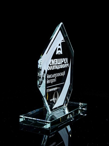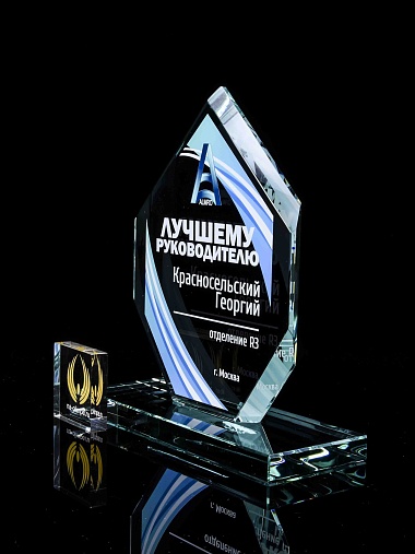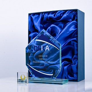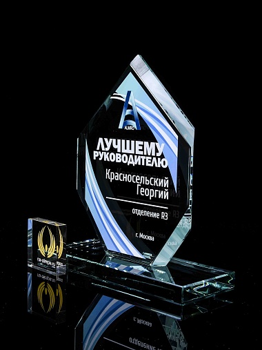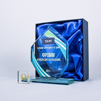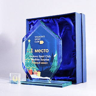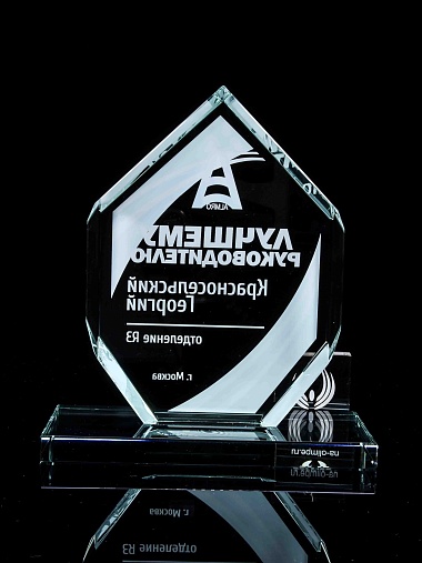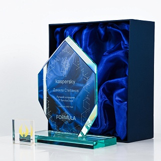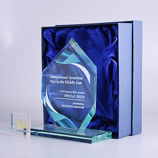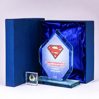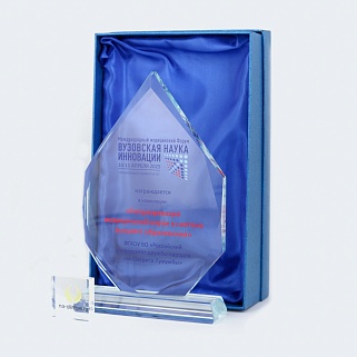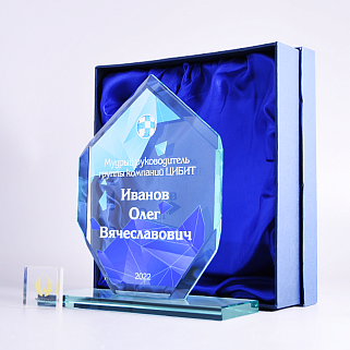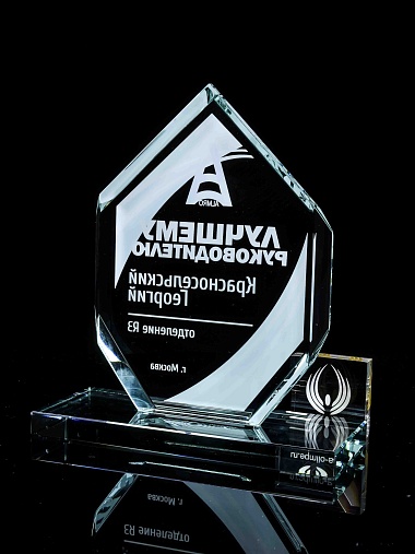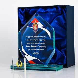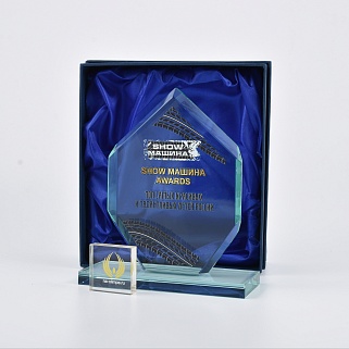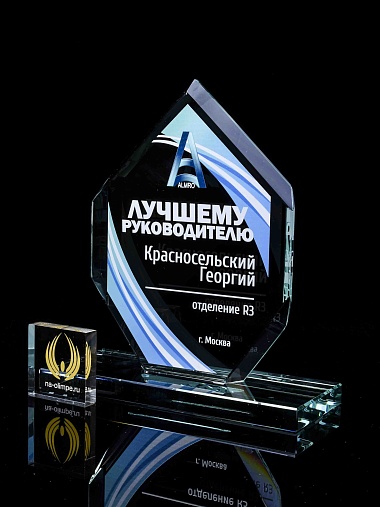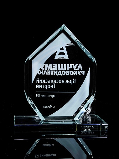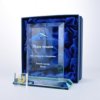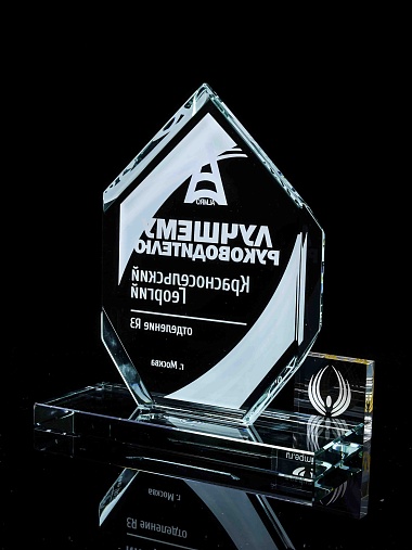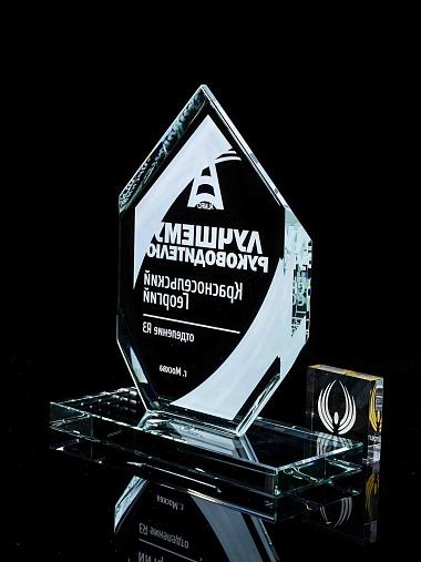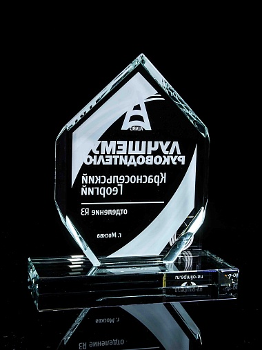 Стеклянная награда с полноцветным нанесением. Толщина стекла 12 мм. Поставляется в комплекте с подарочным футляром. Вес награды без футляра 819гр. Стоимость указана за нанесение на одной стороне, печать выполняется на передней стенке награды.