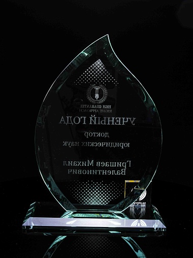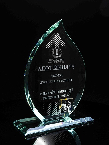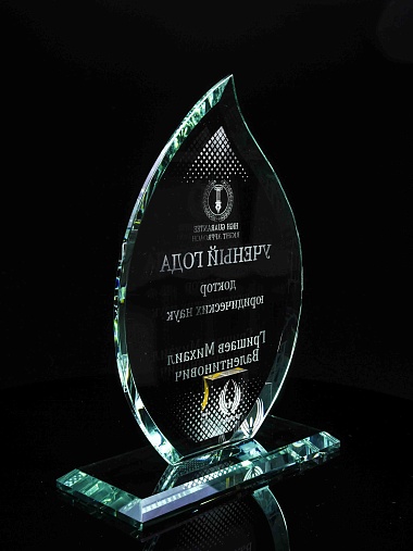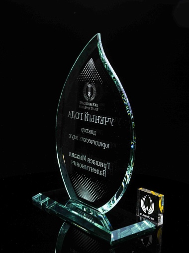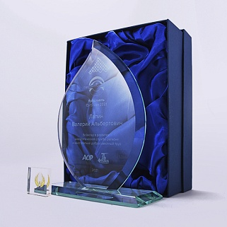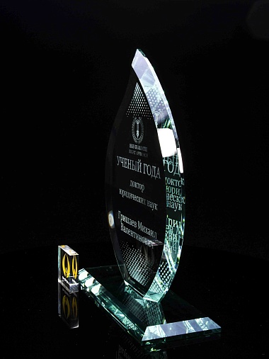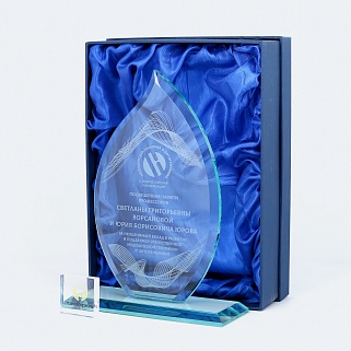 Закажите к награде дополнительно стеклянную медаль. Получится красивый солидный комплект!