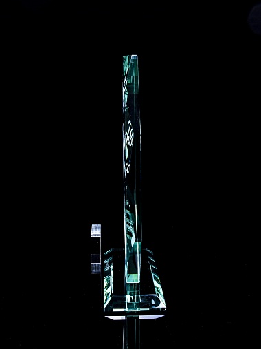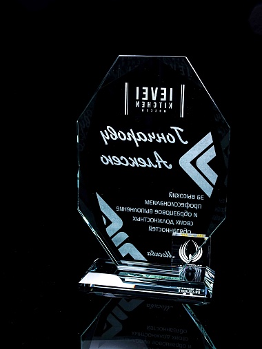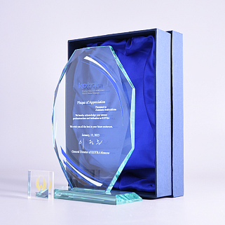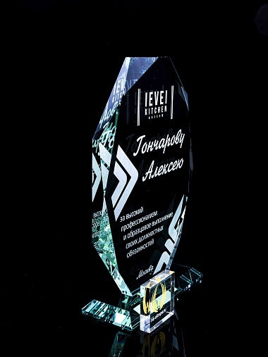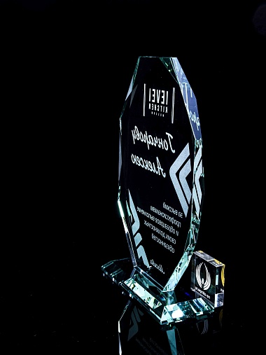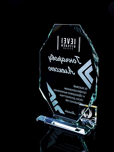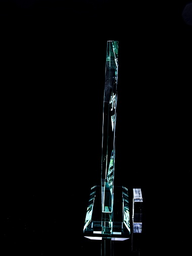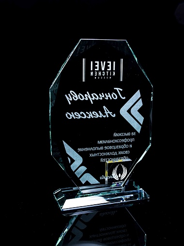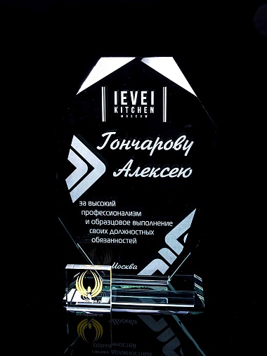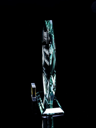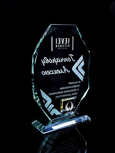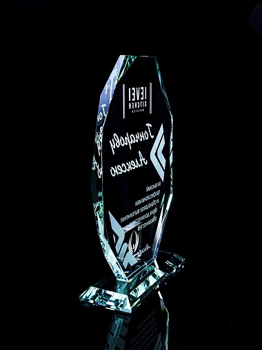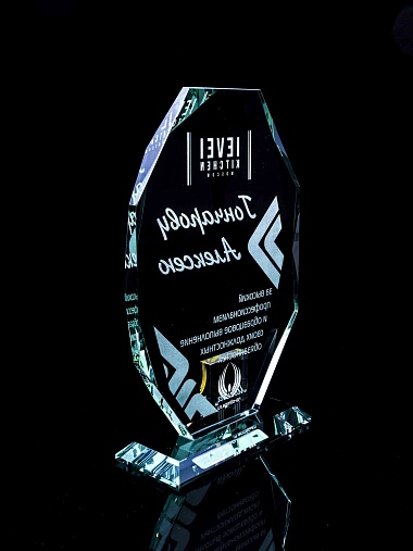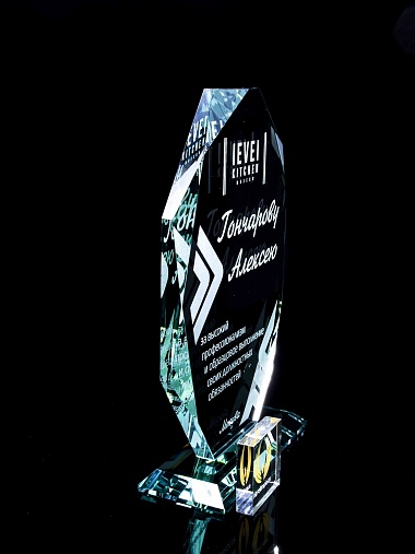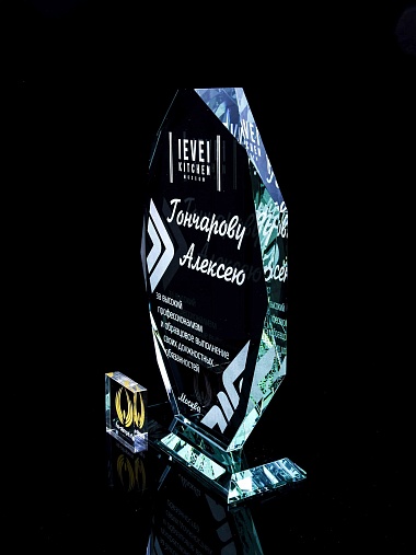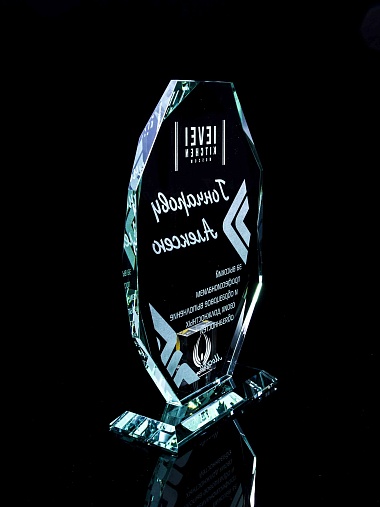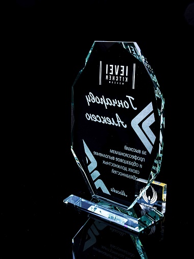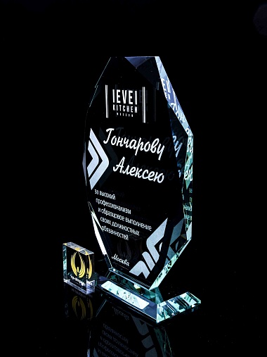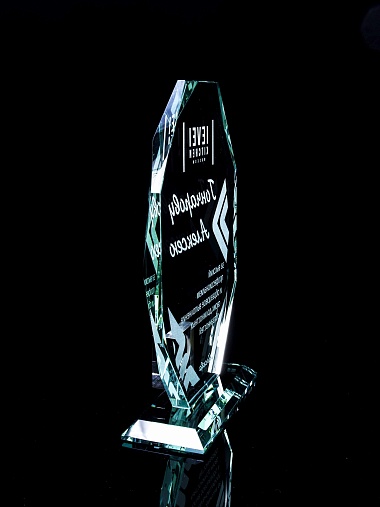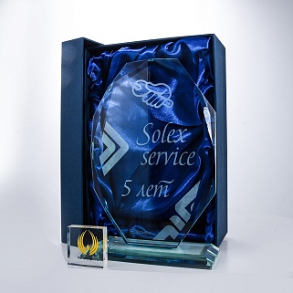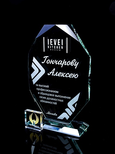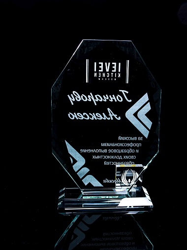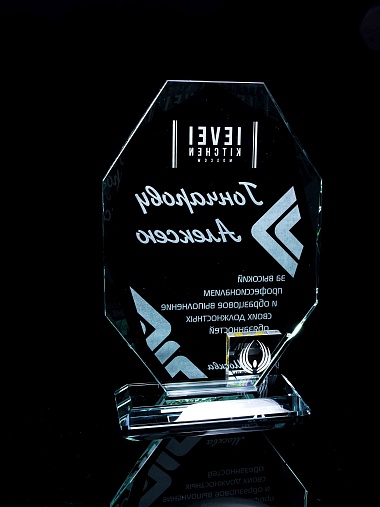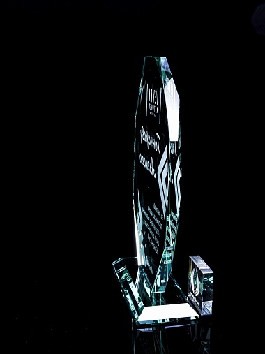 Стеклянная награда с гравировкой. Толщина стекла 12 мм. Поставляется в комплекте с подарочным футляром. Вес награды без футляра 916гр. Стоимость указана за нанесение на одной стороне, гравировка выполняется на передней стенке награды.