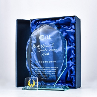 Стеклянная награда J44-215 с гравировкой, высота 21.5 см