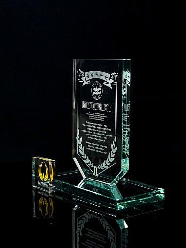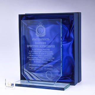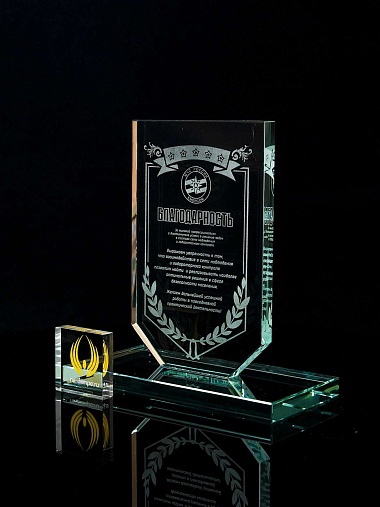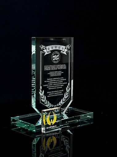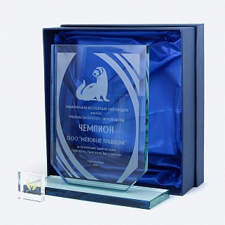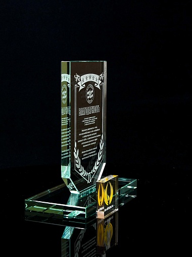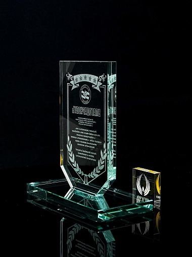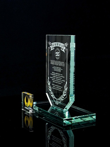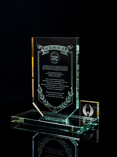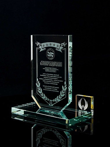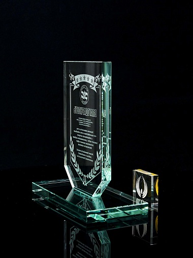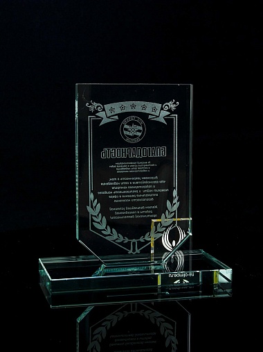 Закажите к награде дополнительно стеклянную медаль. Получится красивый солидный комплект!