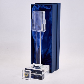 Стеклянная награда Микрофон C145 с гравировкой, высота 28 см