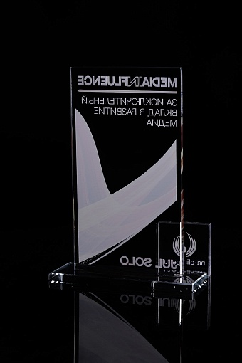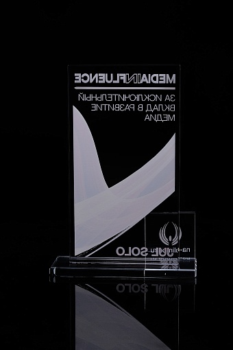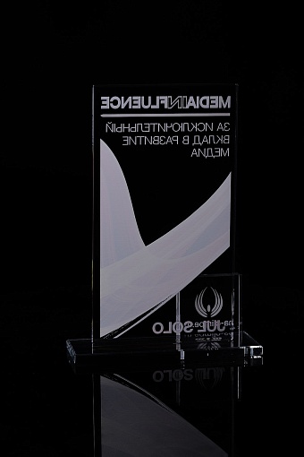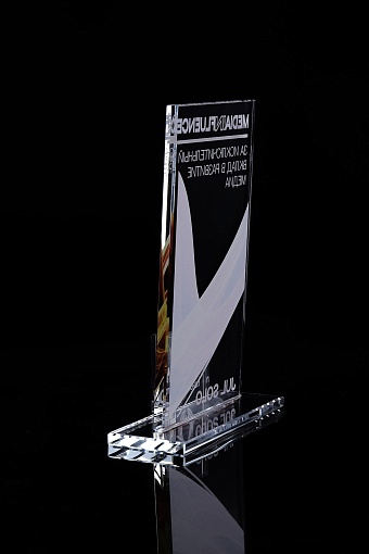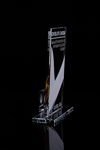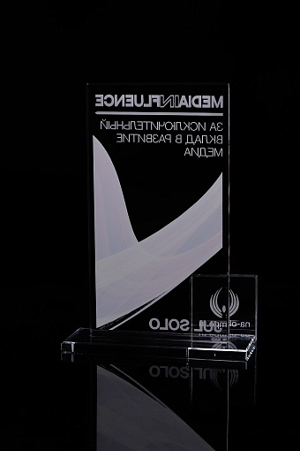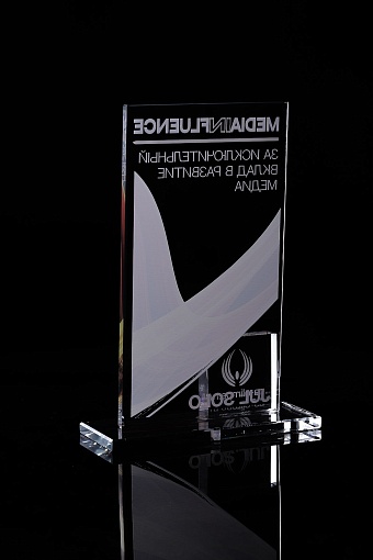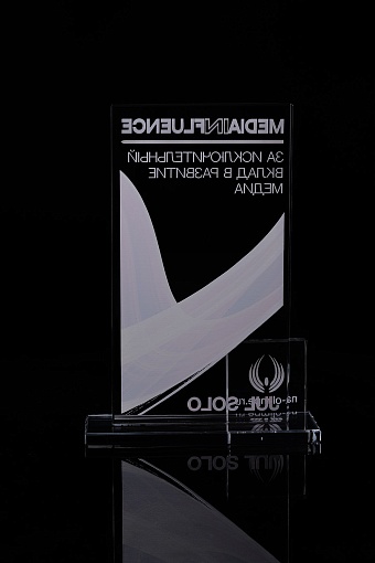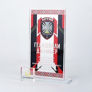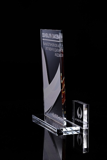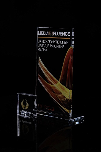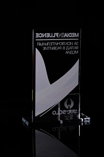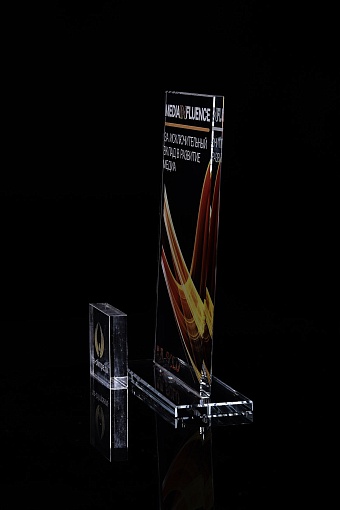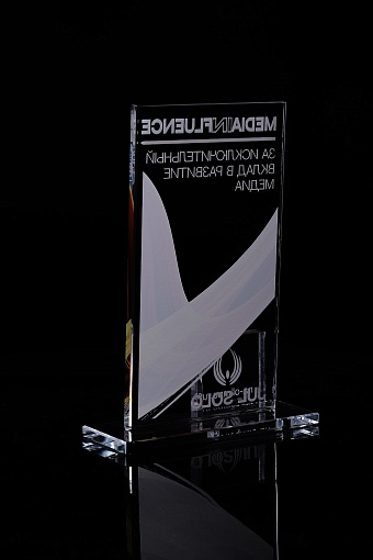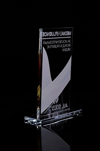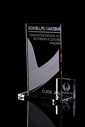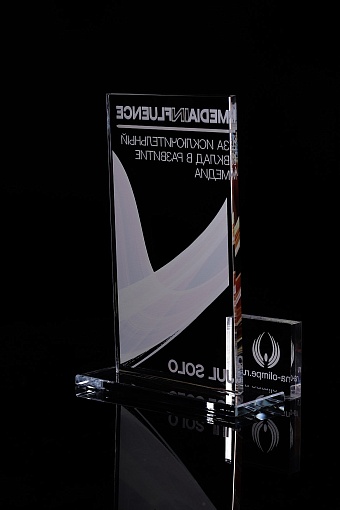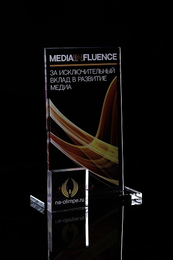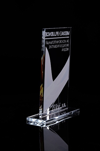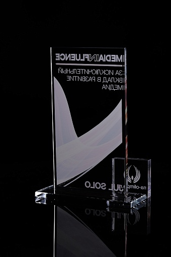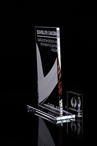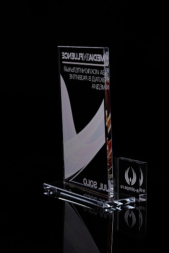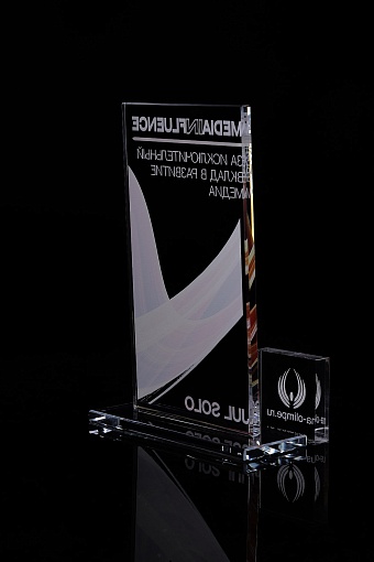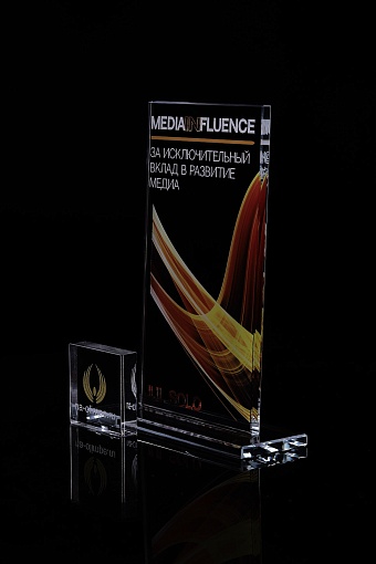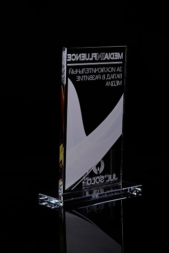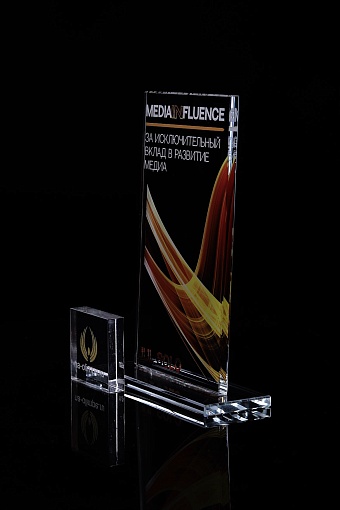 Стеклянная награда с полноцветным нанесением. Толщина стекла 6 мм. Стоимость указана за нанесение на одной стороне, печать выполняется на задней стенке награды. Поставляется в крафтовой коробке.