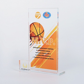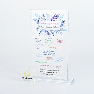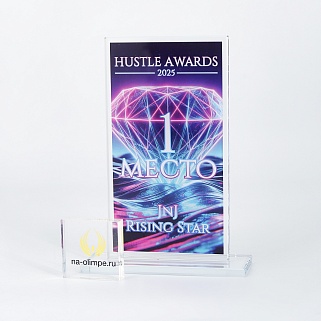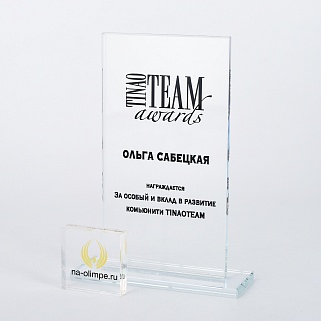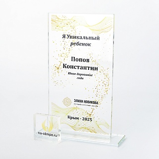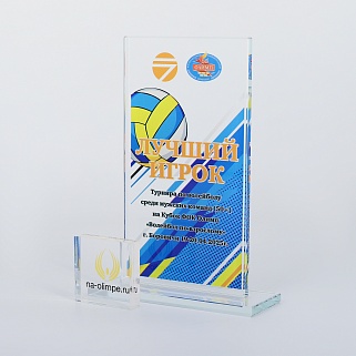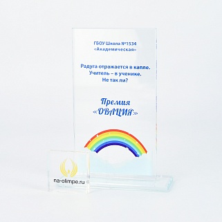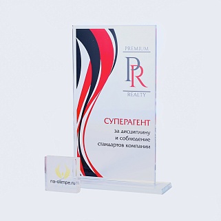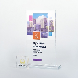 Стеклянная награда T01S с цветным нанесением, высота 15.5 см