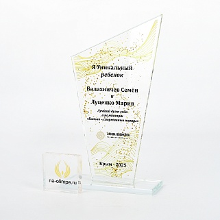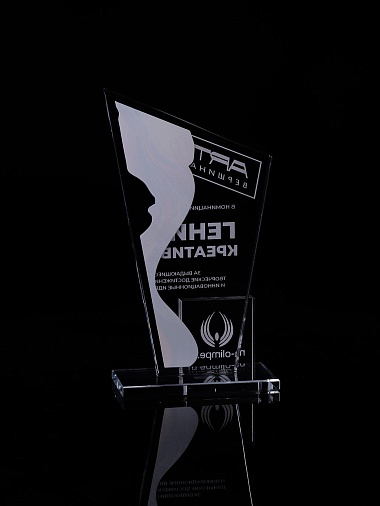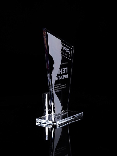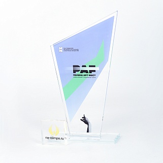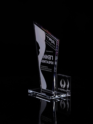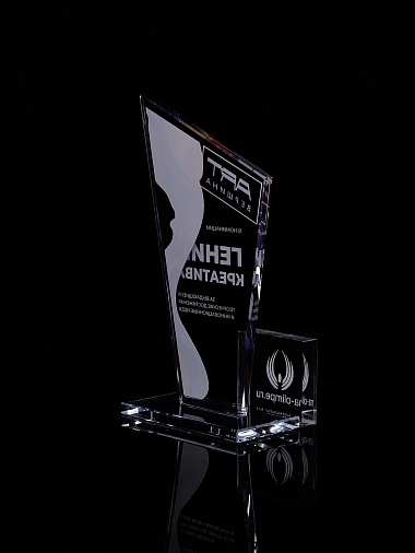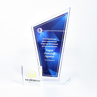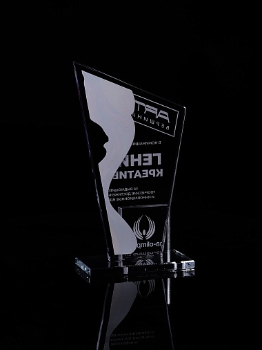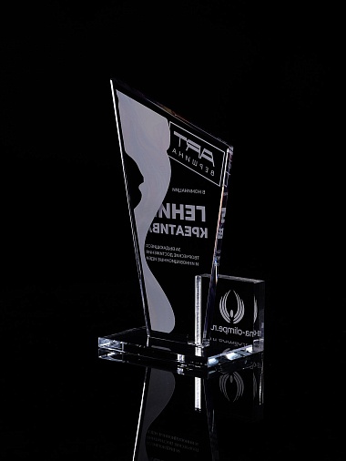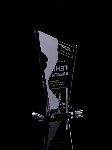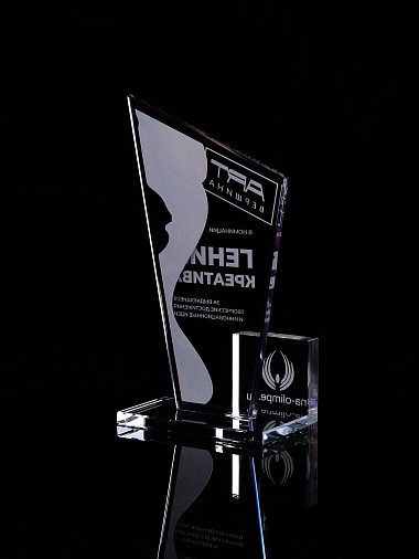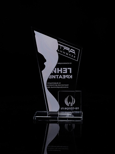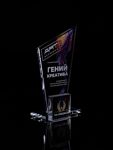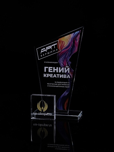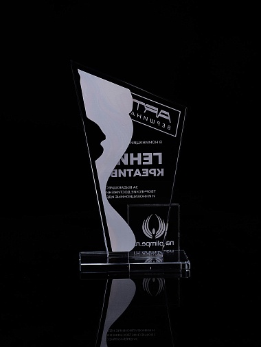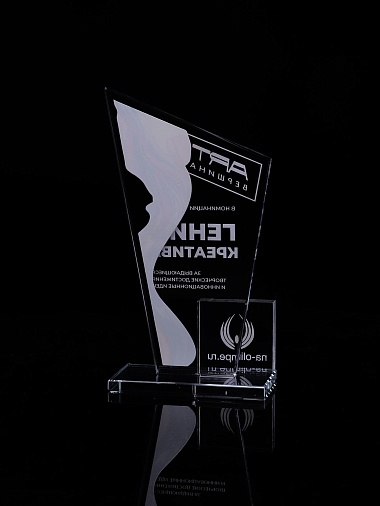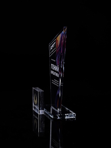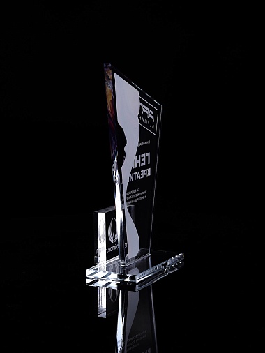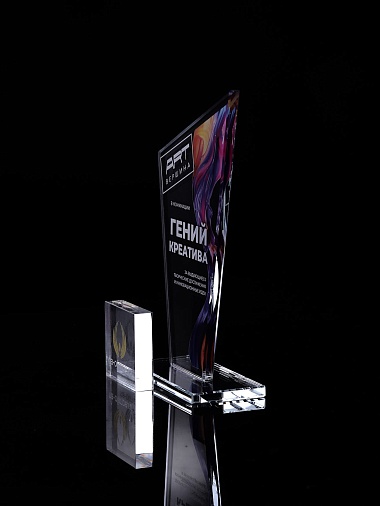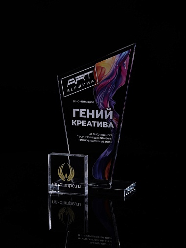 Стеклянная награда с полноцветным нанесением. Толщина стекла 6 мм. Стоимость указана за нанесение на одной стороне, печать выполняется на задней стенке награды. Поставляется в крафтовой коробке.