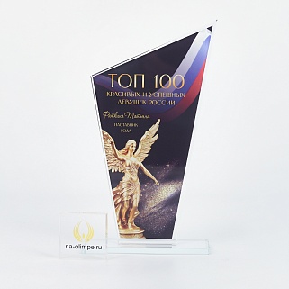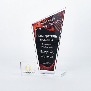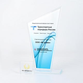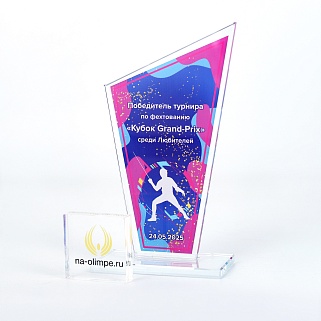 Стеклянная награда T02M с цветным нанесением, высота 18 см
