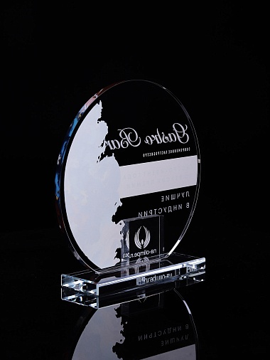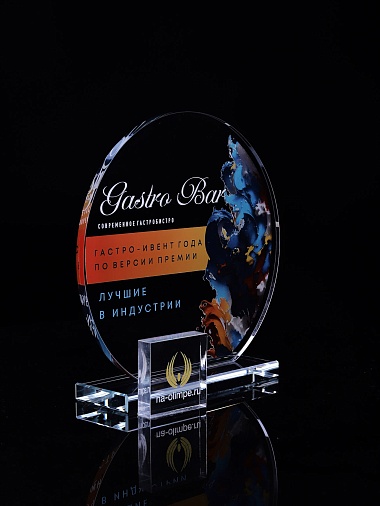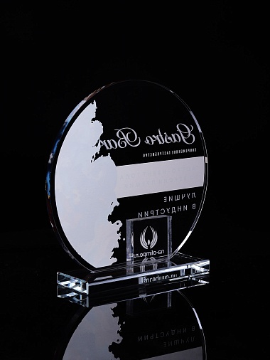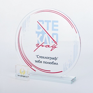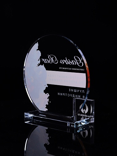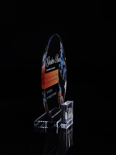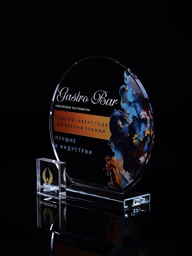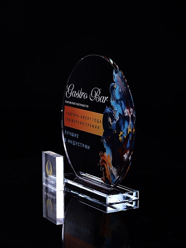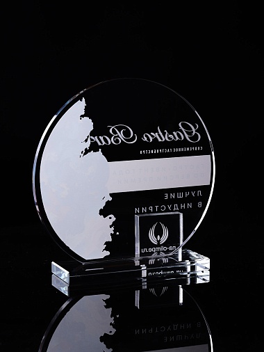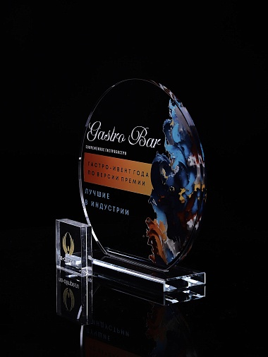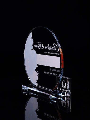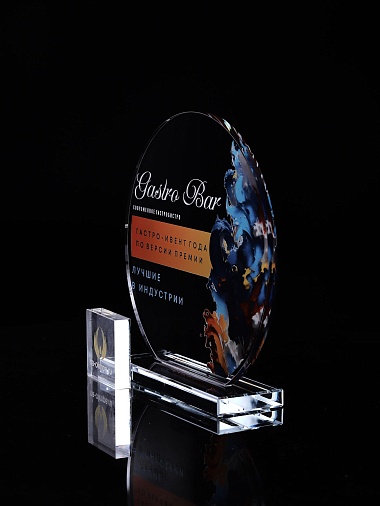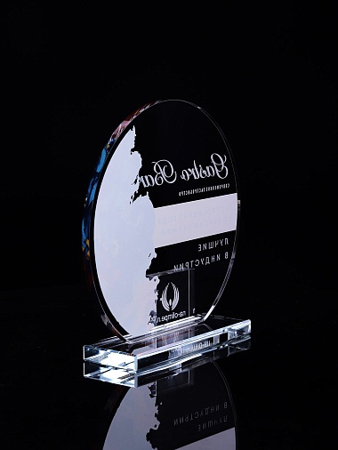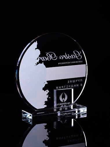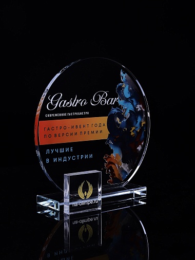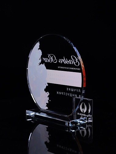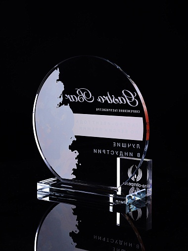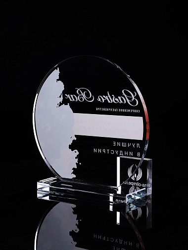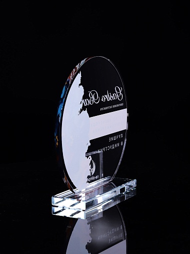Стеклянная награда с полноцветным нанесением. Толщина стекла 6 мм. Толщина стекла постамента 10мм. Стоимость указана за нанесение на одной стороне, печать выполняется на передней стенке награды. Поставляется в крафтовой коробке.